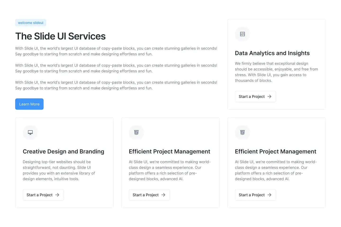 View Benefit / Statistic blocksPerfect for agencies, consultants, and SaaS tools to clearly explain services offered, with icon, card, or list formats.