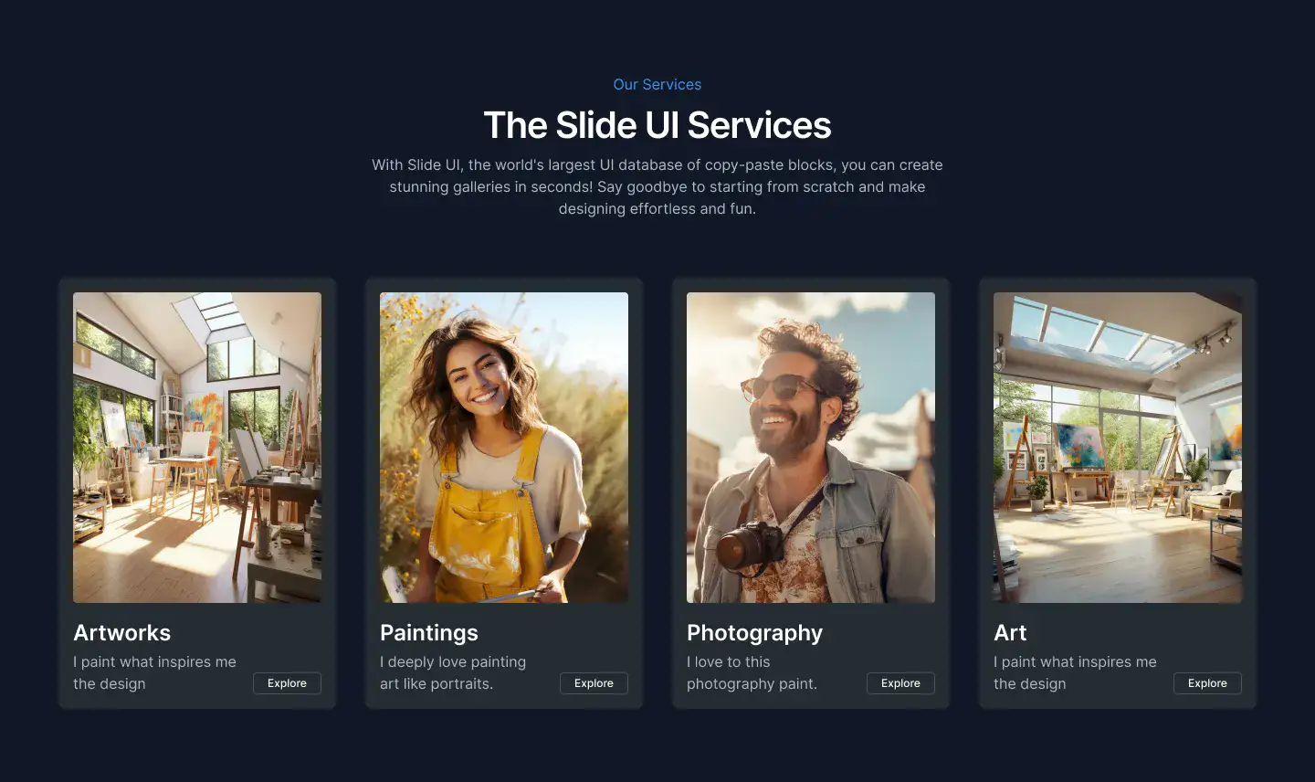 View Hero blocksShowcase processes, features, or onboarding in a clean 3–4 step layout. These are perfect for explaining complex ideas simply.