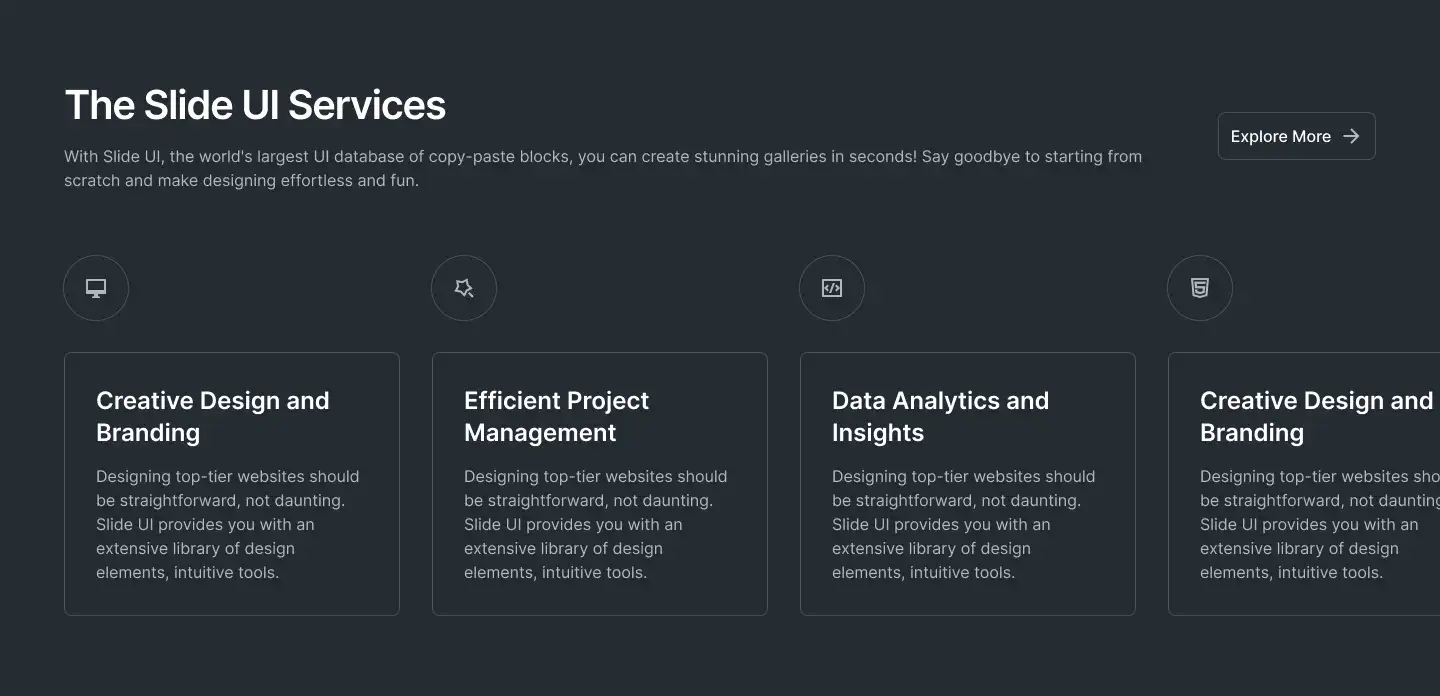 Grid or column-based layouts to highlight your best product features — fast, skimmable, and easy to reuse.