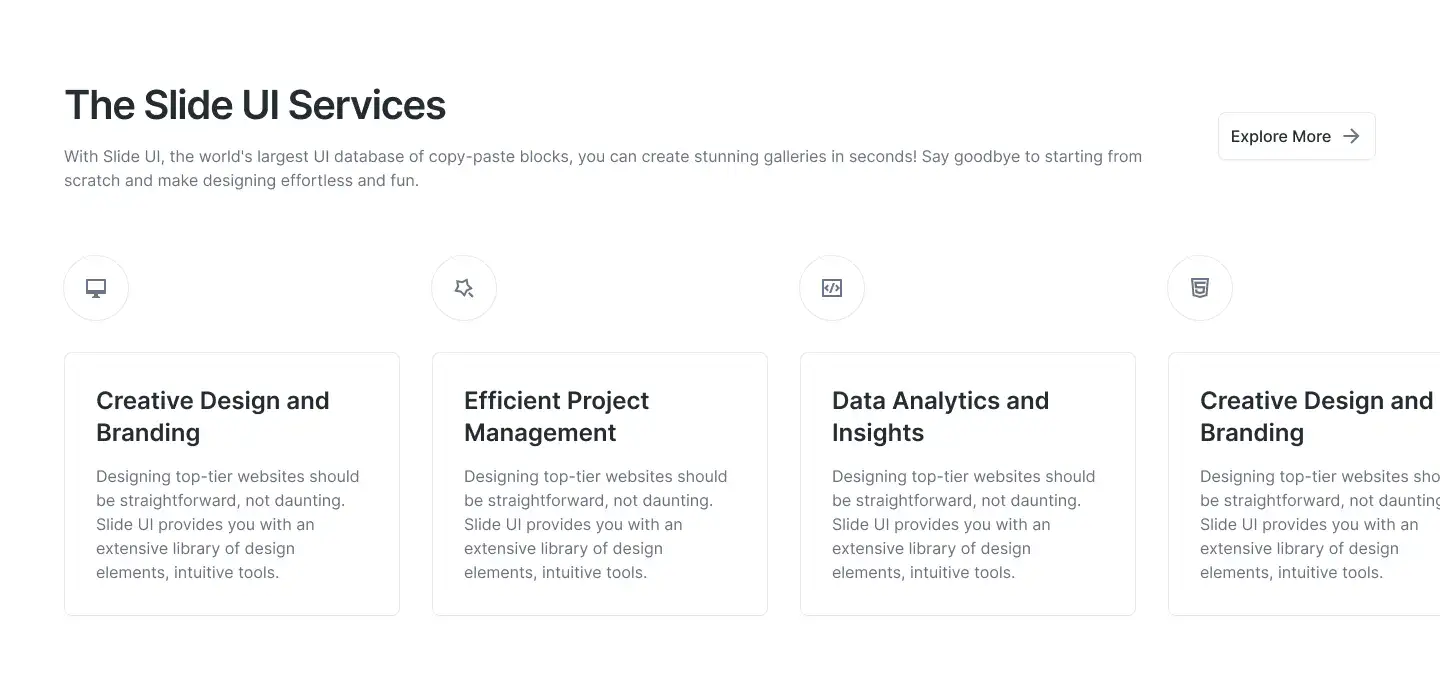 View Benefit / Statistic blocksPerfect for agencies, consultants, and SaaS tools to clearly explain services offered, with icon, card, or list formats.