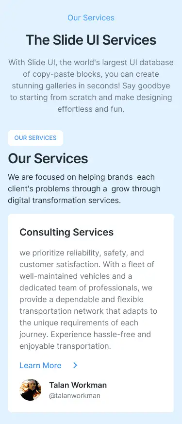 View Benefit / Statistic blocksPerfect for agencies, consultants, and SaaS tools to clearly explain services offered, with icon, card, or list formats.