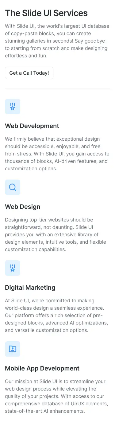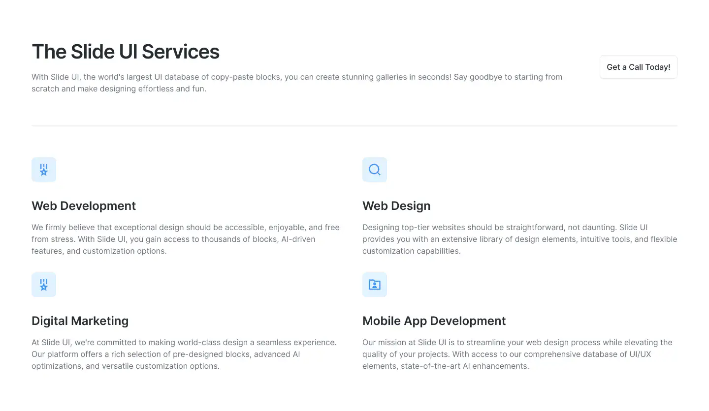 View Benefit / Statistic blocksPerfect for agencies, consultants, and SaaS tools to clearly explain services offered, with icon, card, or list formats.