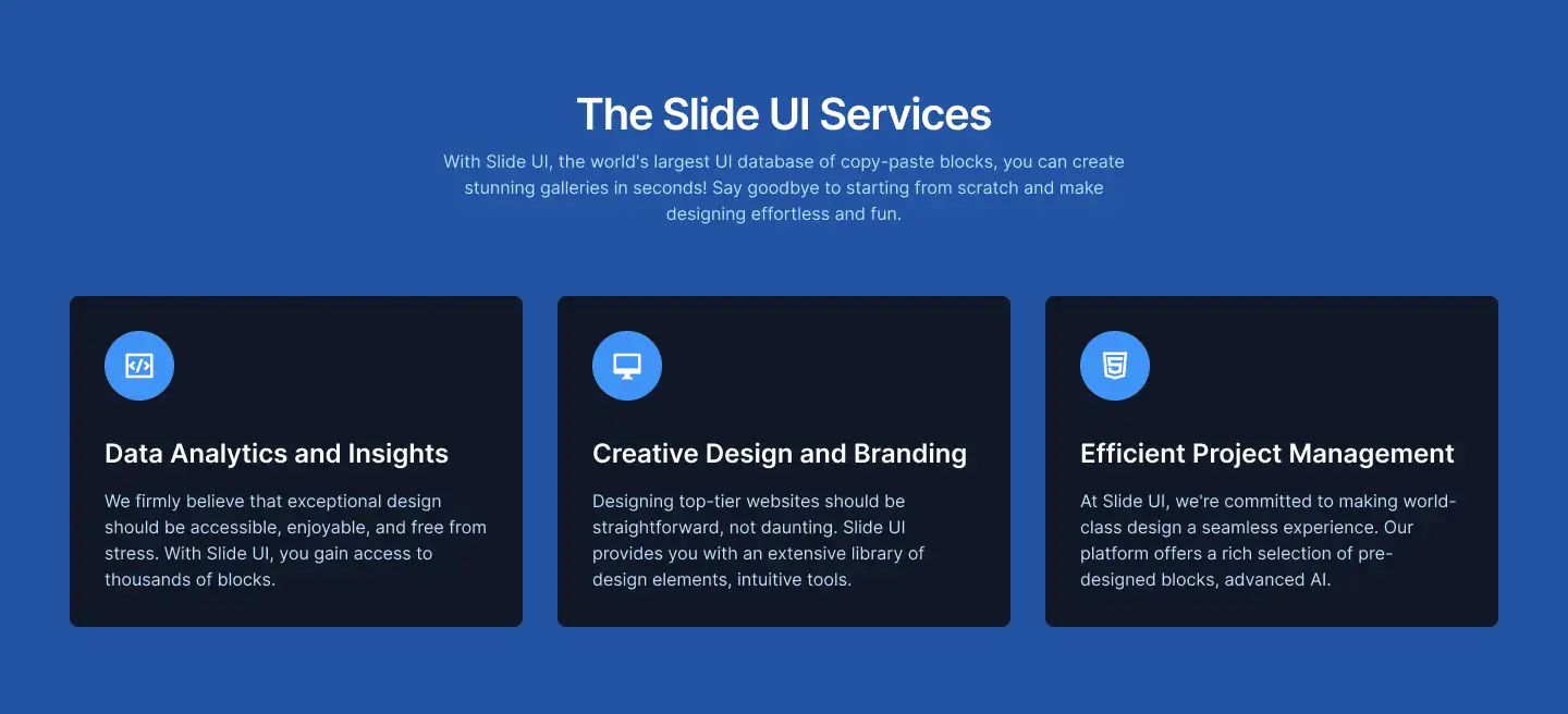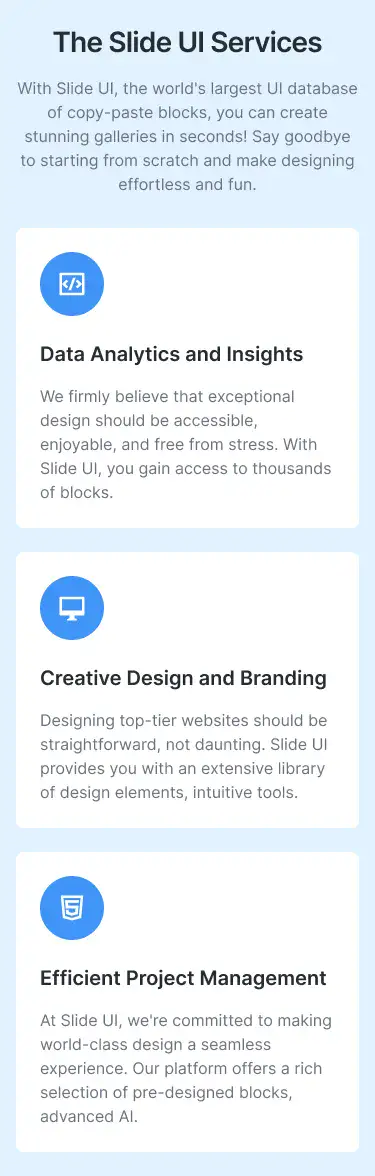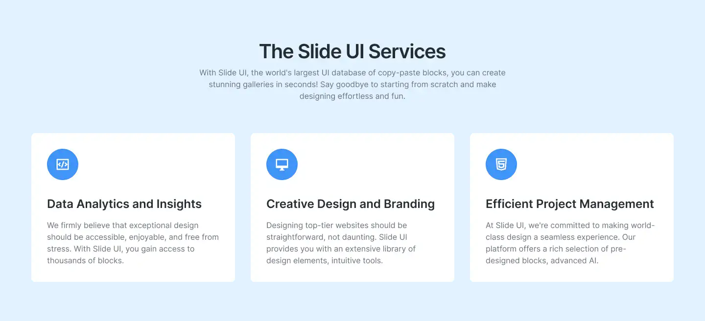 View Benefit / Statistic blocksPerfect for agencies, consultants, and SaaS tools to clearly explain services offered, with icon, card, or list formats.