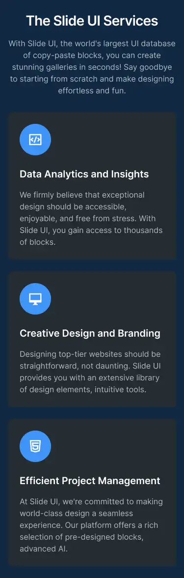 Grid or column-based layouts to highlight your best product features — fast, skimmable, and easy to reuse.