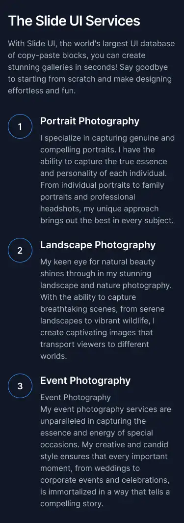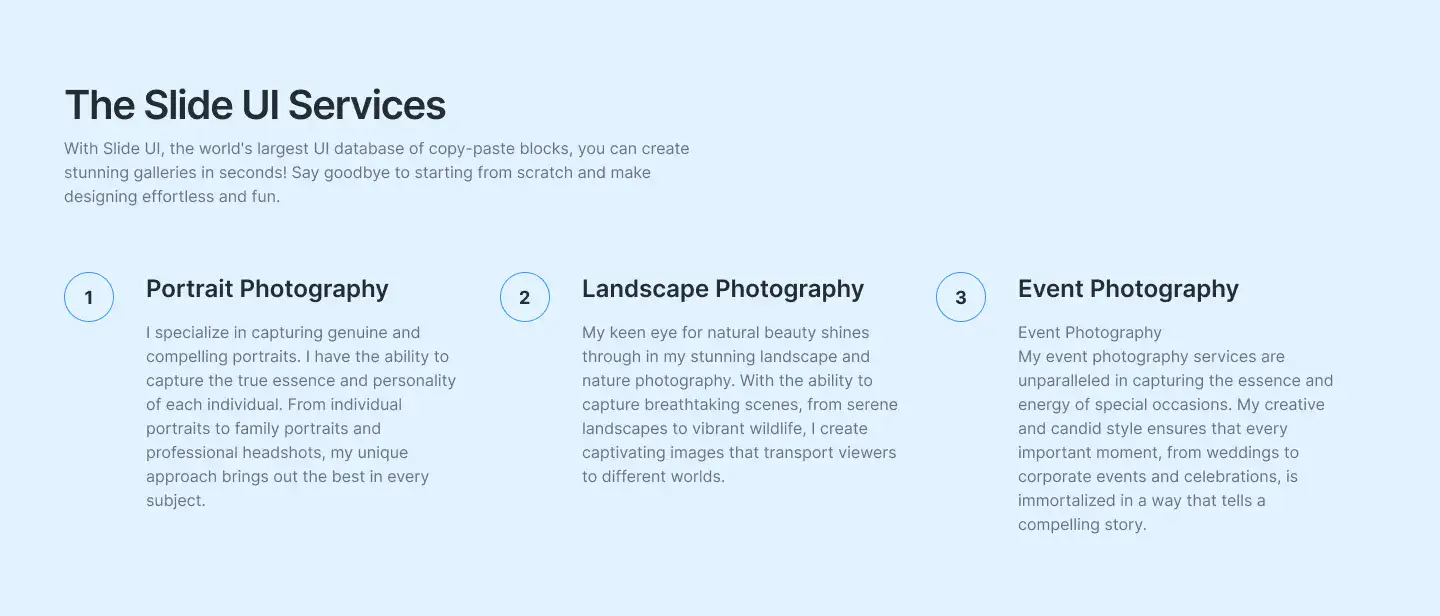 View Hero blocksShowcase processes, features, or onboarding in a clean 3–4 step layout. These are perfect for explaining complex ideas simply.