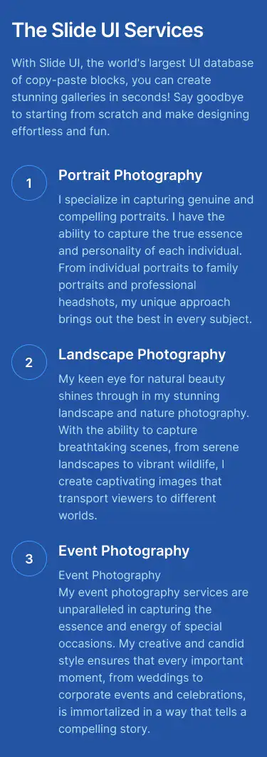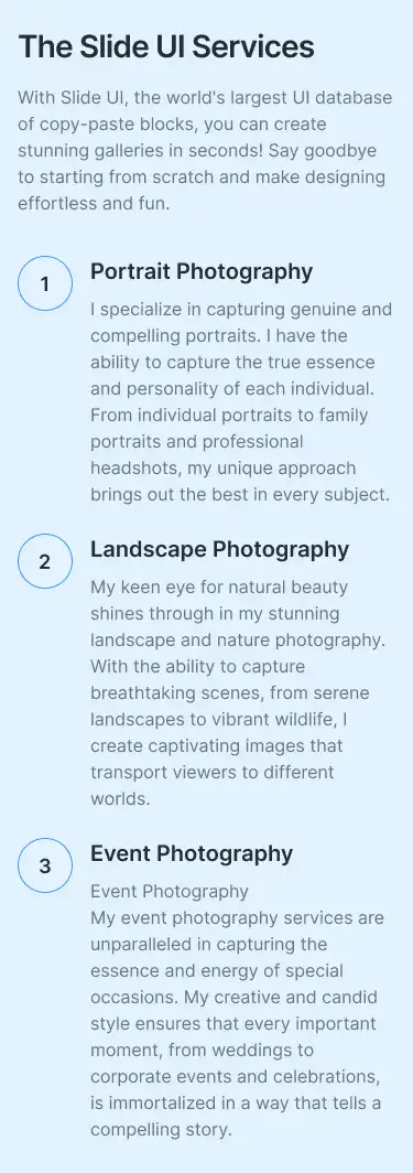 View Benefit / Statistic blocksPerfect for agencies, consultants, and SaaS tools to clearly explain services offered, with icon, card, or list formats.