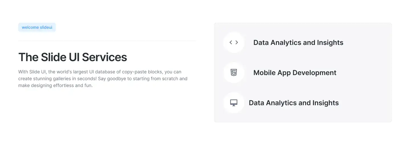 View Benefit / Statistic blocksPerfect for agencies, consultants, and SaaS tools to clearly explain services offered, with icon, card, or list formats.