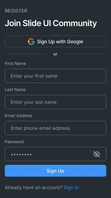 Sign Up Layout for Figma — minimal, themeable and responsive across Desktop, Tablet and Mobile. Includes Light, Dark and Accent modes for fast customisation. Ideal for Events, Tech, Transportation.