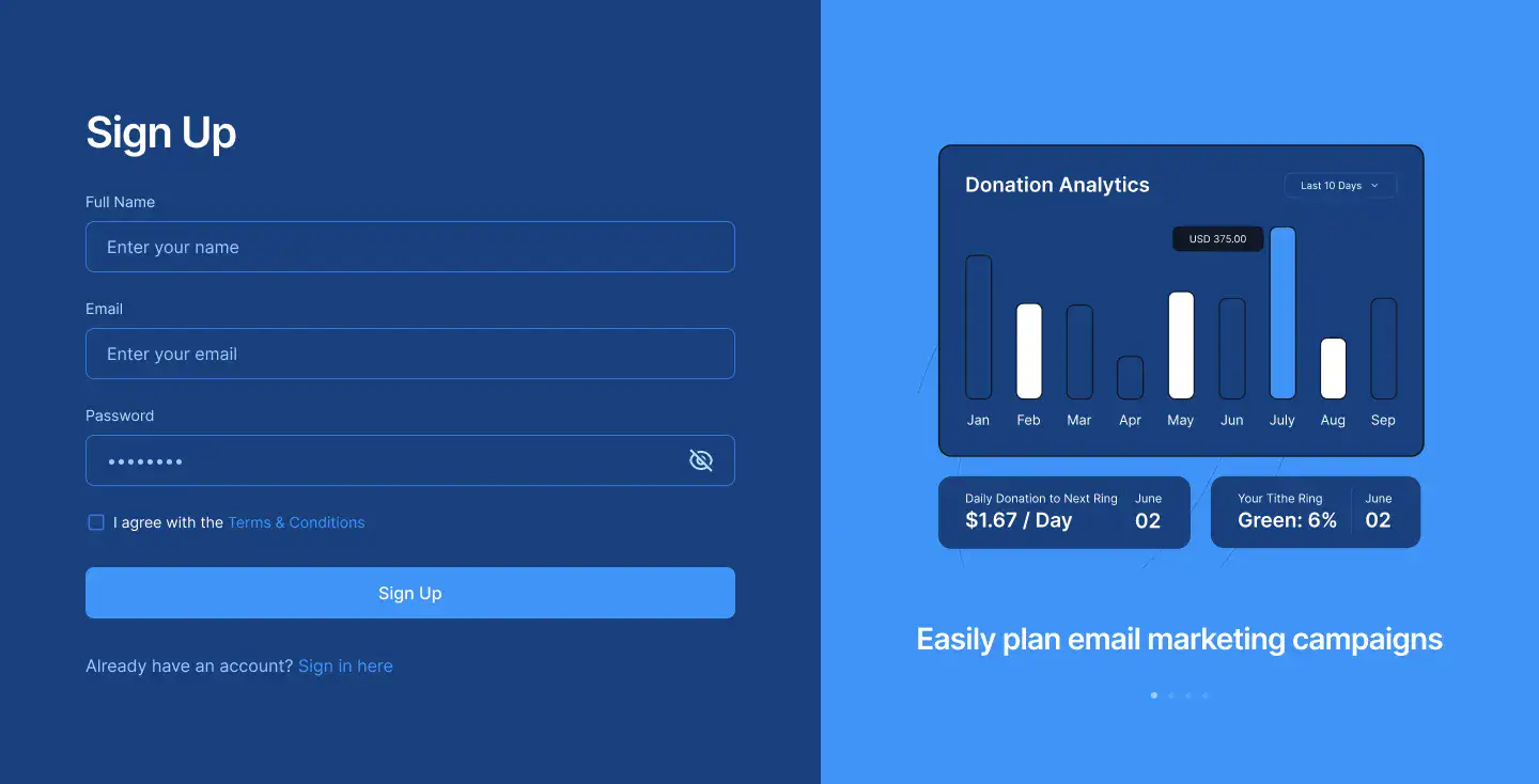 Sign Up Layout for Figma — modern, themeable and responsive across Desktop, Tablet and Mobile. Includes Light, Dark and Accent modes for fast customisation. Ideal for Hotel, Insurance, Real Estate.