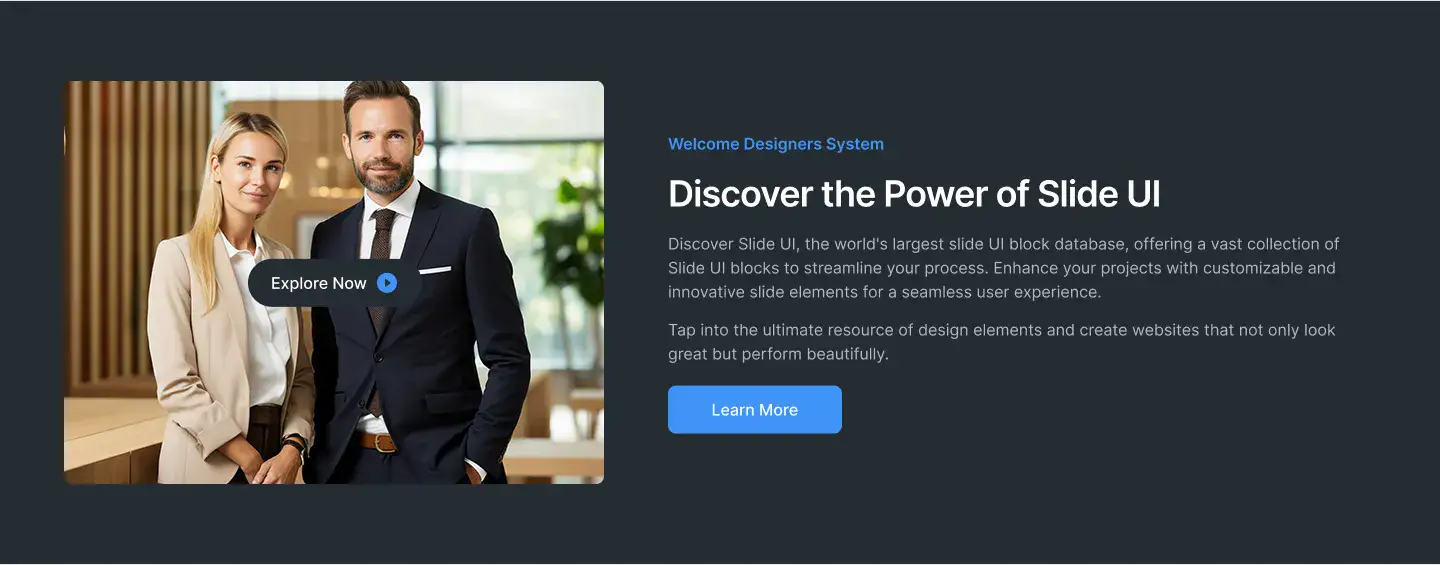 View Hero blocksShowcase processes, features, or onboarding in a clean 3–4 step layout. These are perfect for explaining complex ideas simply.