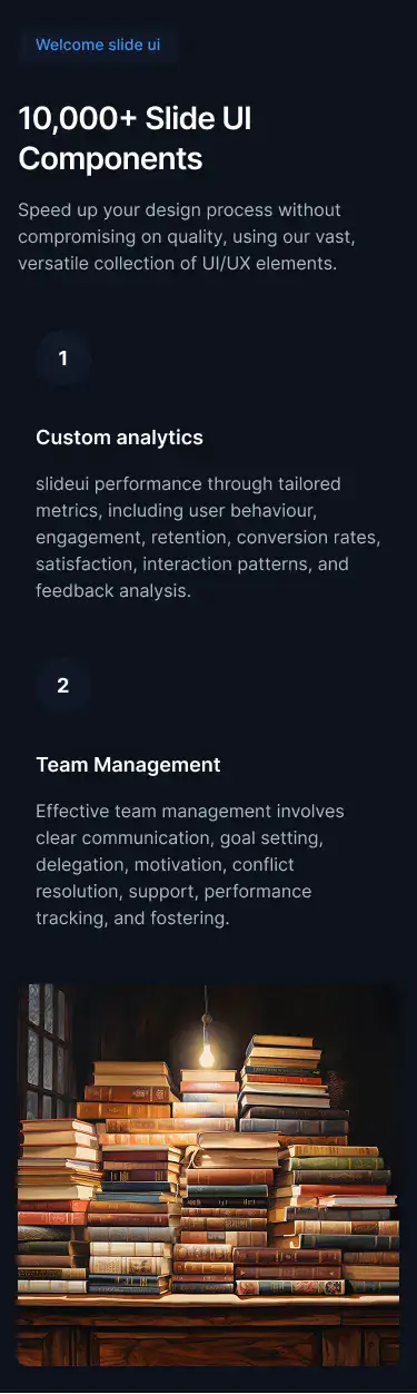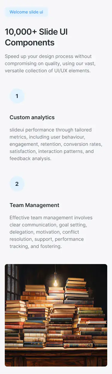 Lightweight sections for storytelling, intros, or visual breaks. Ideal for portfolios, agencies, and SaaS.