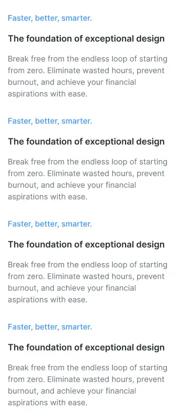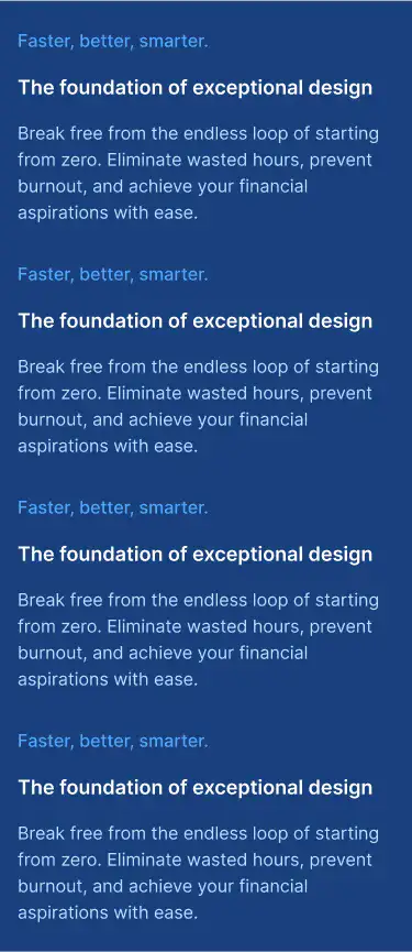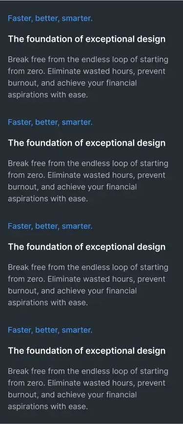 Lightweight sections for storytelling, intros, or visual breaks. Ideal for portfolios, agencies, and SaaS.