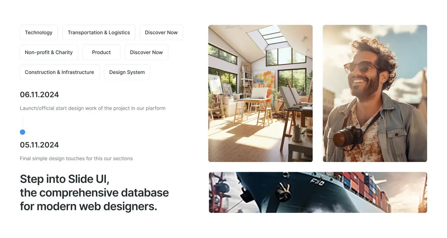 Lightweight sections for storytelling, intros, or visual breaks. Ideal for portfolios, agencies, and SaaS.