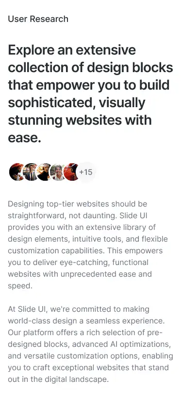 Lightweight sections for storytelling, intros, or visual breaks. Ideal for portfolios, agencies, and SaaS.