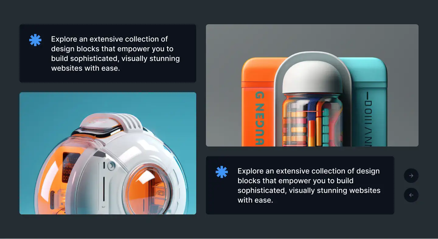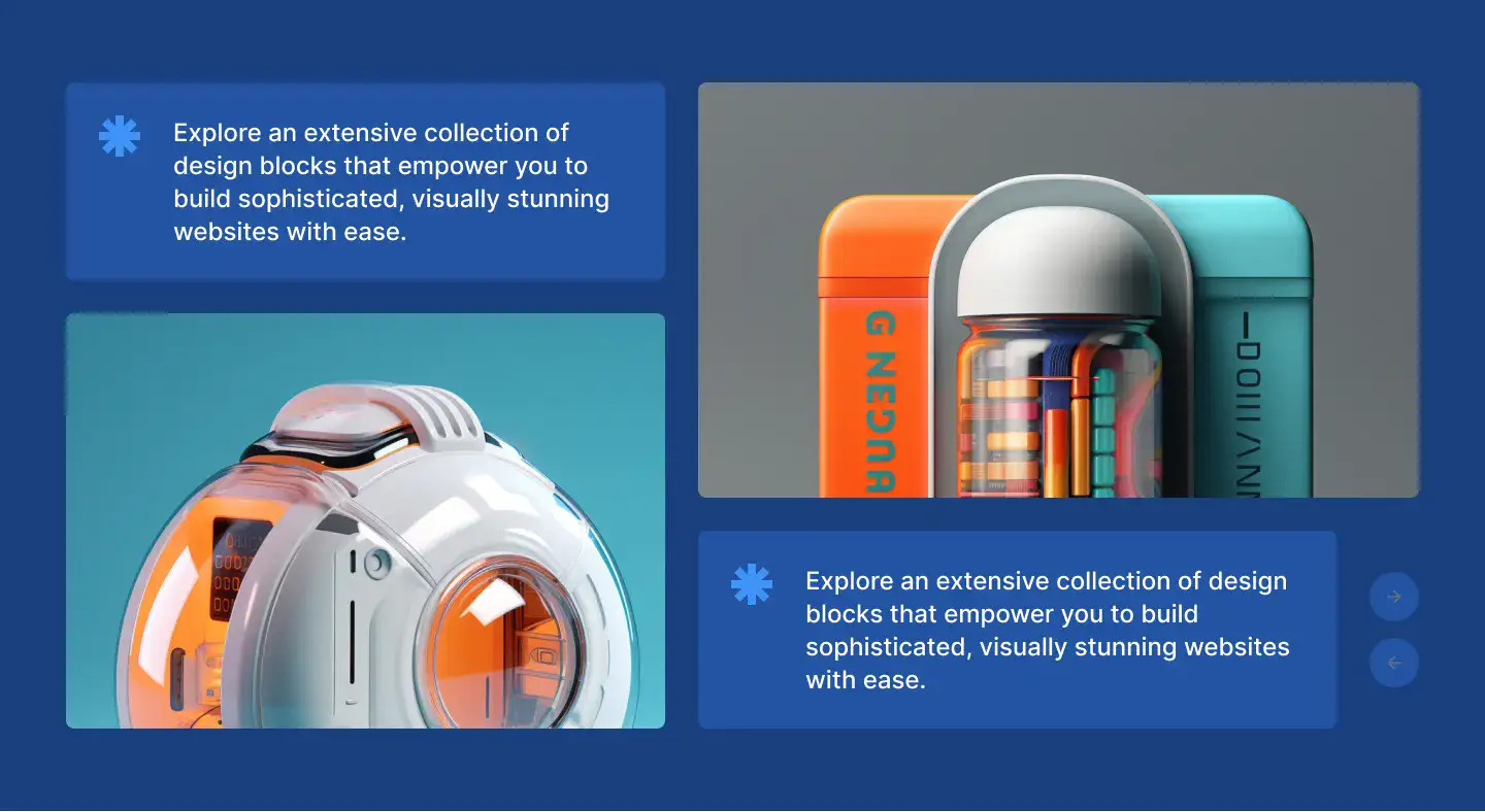 Grid or column-based layouts to highlight your best product features — fast, skimmable, and easy to reuse.