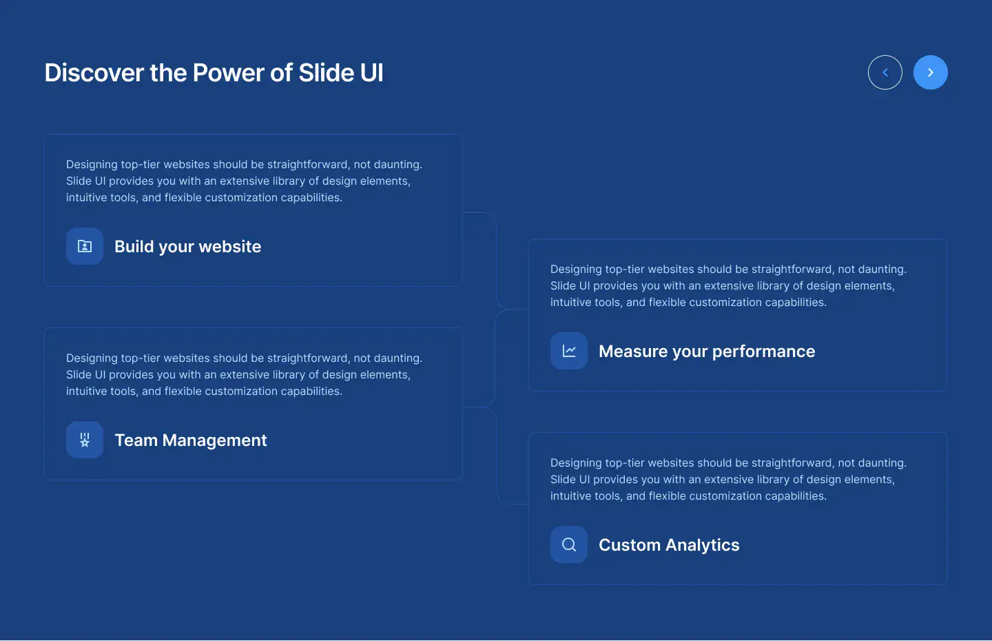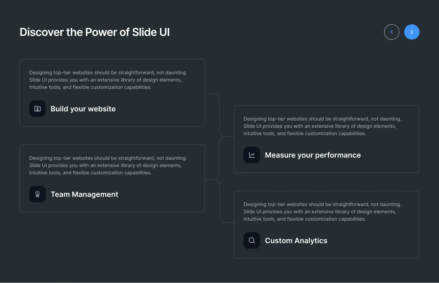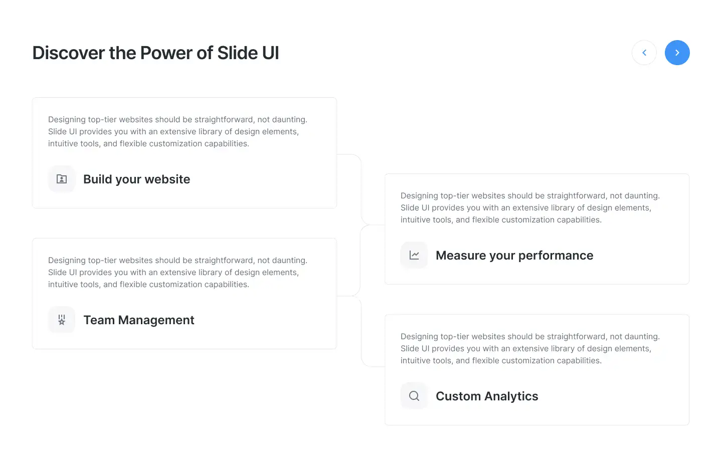 Grid or column-based layouts to highlight your best product features — fast, skimmable, and easy to reuse.
