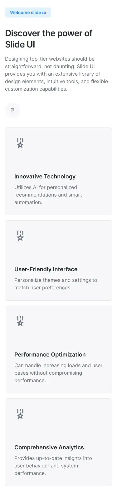 Grid or column-based layouts to highlight your best product features — fast, skimmable, and easy to reuse.