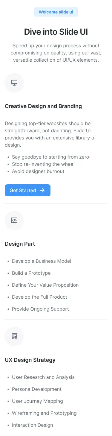 Grid or column-based layouts to highlight your best product features — fast, skimmable, and easy to reuse.