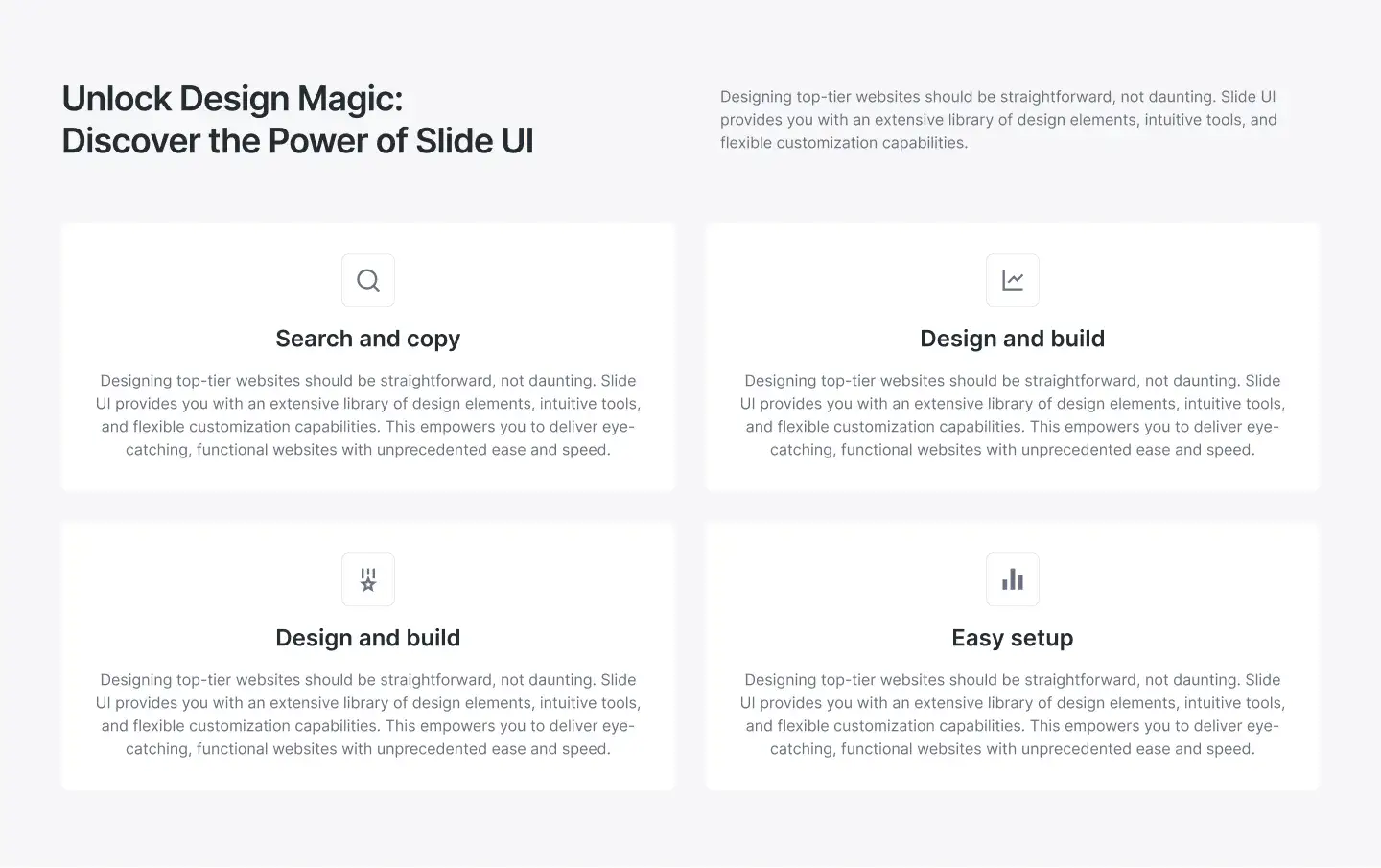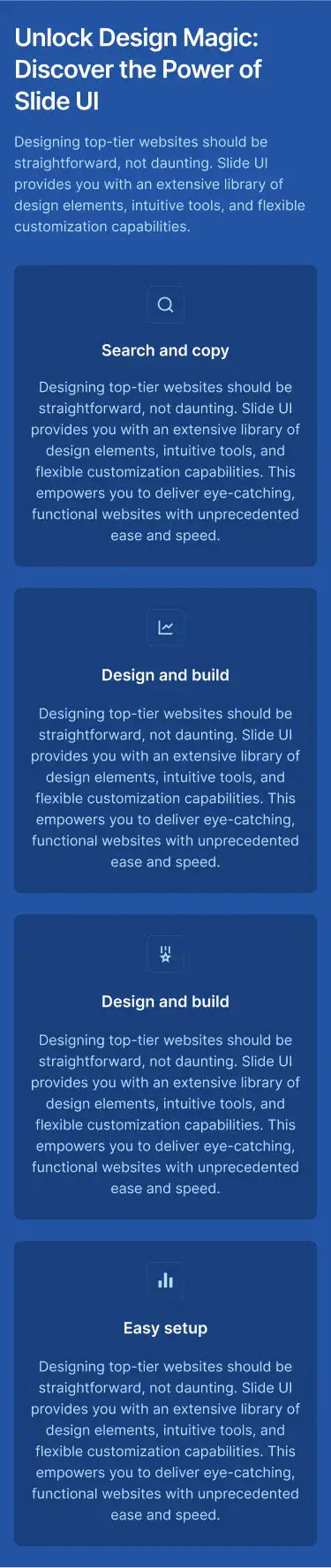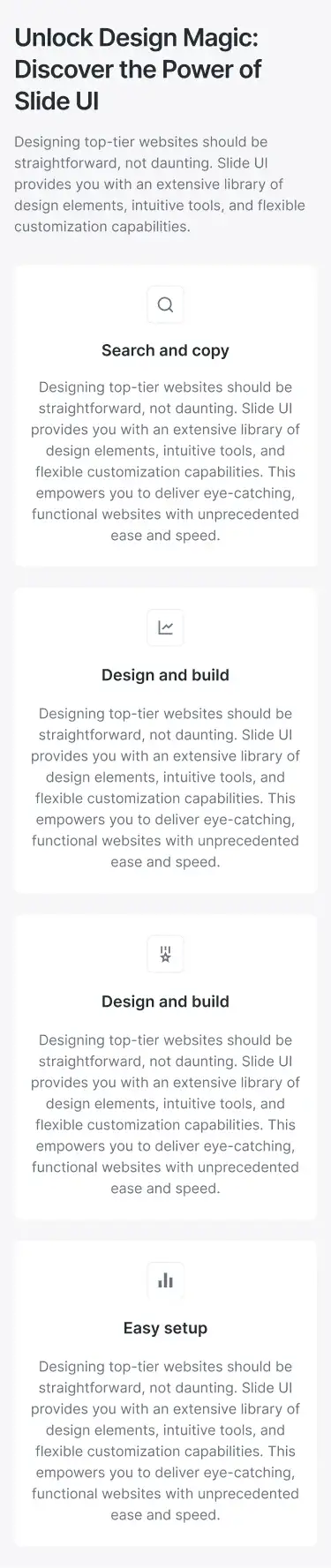 Lightweight sections for storytelling, intros, or visual breaks. Ideal for portfolios, agencies, and SaaS.