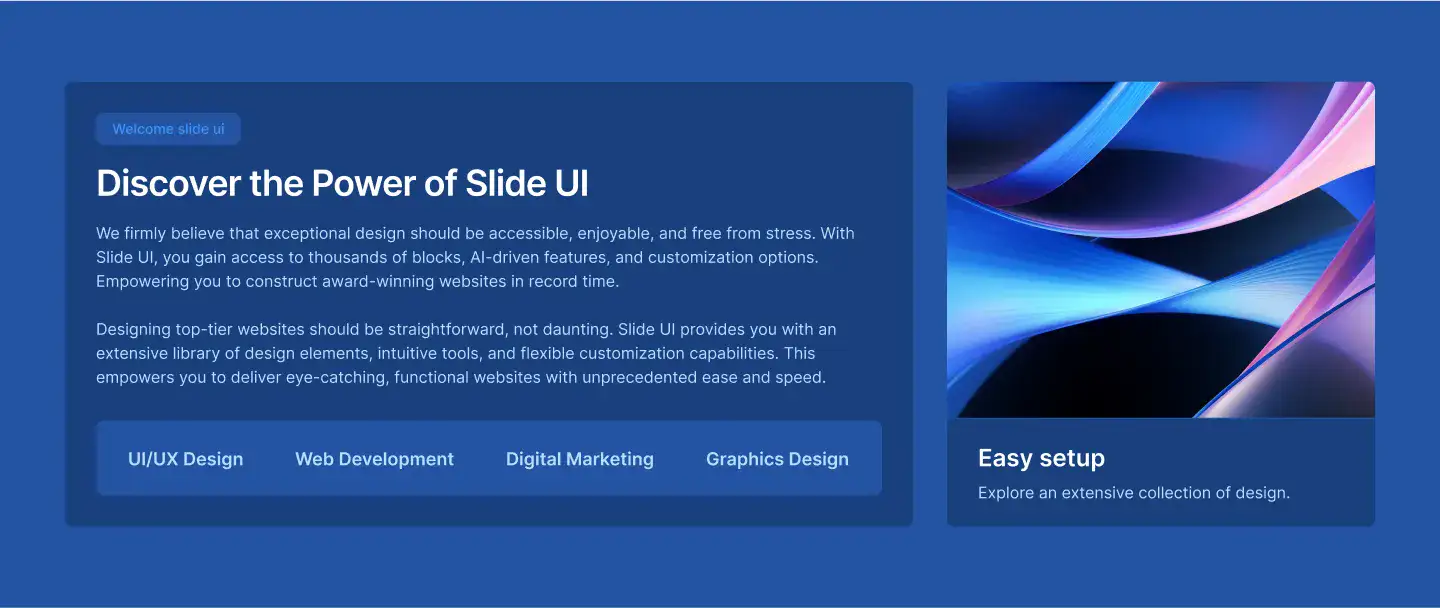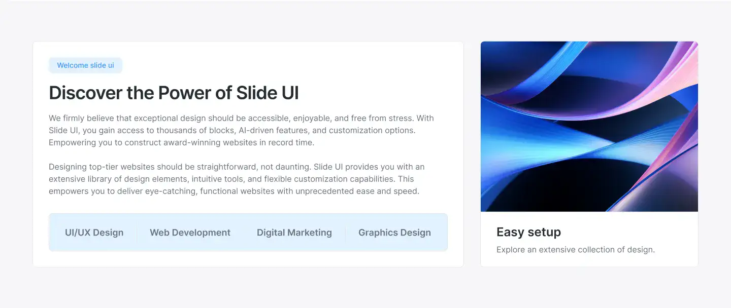 Lightweight sections for storytelling, intros, or visual breaks. Ideal for portfolios, agencies, and SaaS.