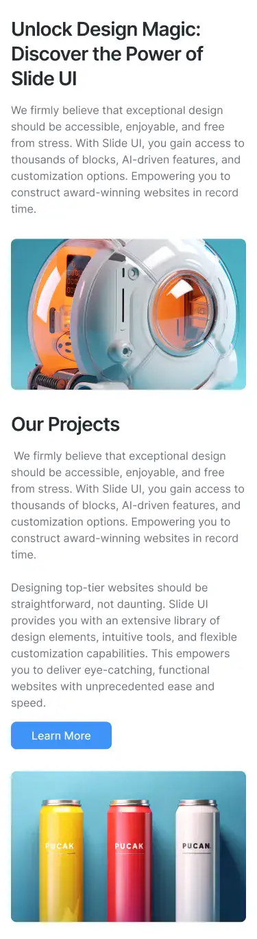 Lightweight sections for storytelling, intros, or visual breaks. Ideal for portfolios, agencies, and SaaS.