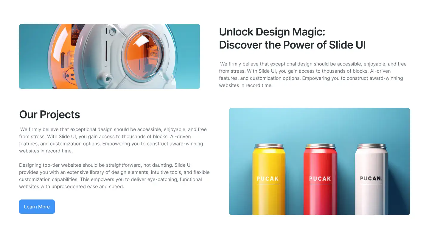 Grid or column-based layouts to highlight your best product features — fast, skimmable, and easy to reuse.