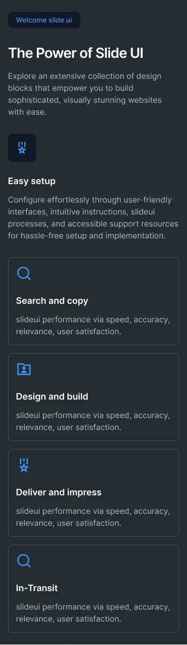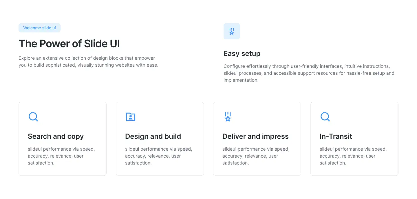 View Hero blocksShowcase processes, features, or onboarding in a clean 3–4 step layout. These are perfect for explaining complex ideas simply.