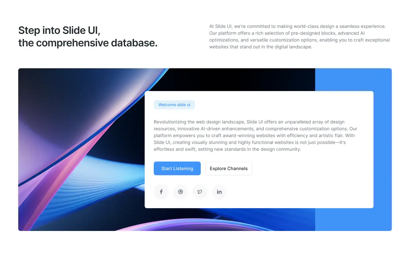 Lightweight sections for storytelling, intros, or visual breaks. Ideal for portfolios, agencies, and SaaS.