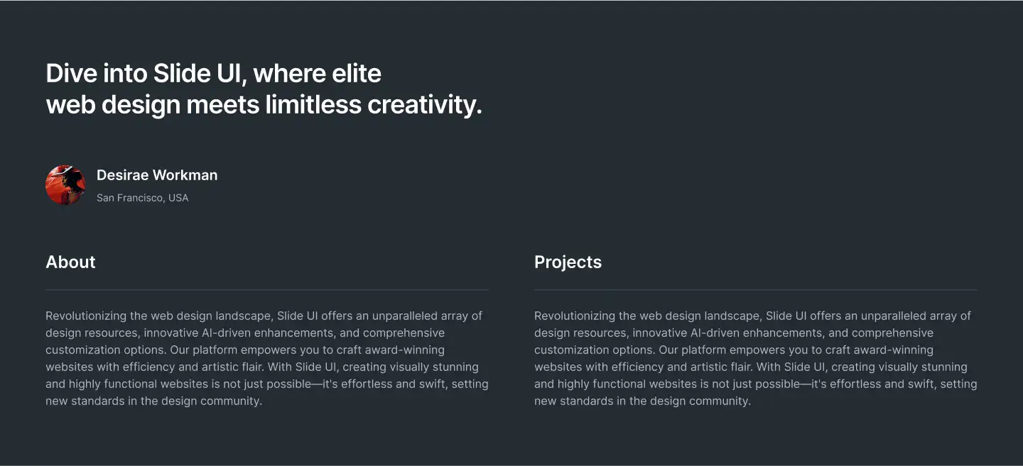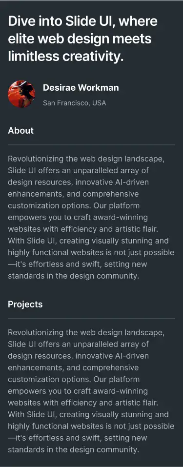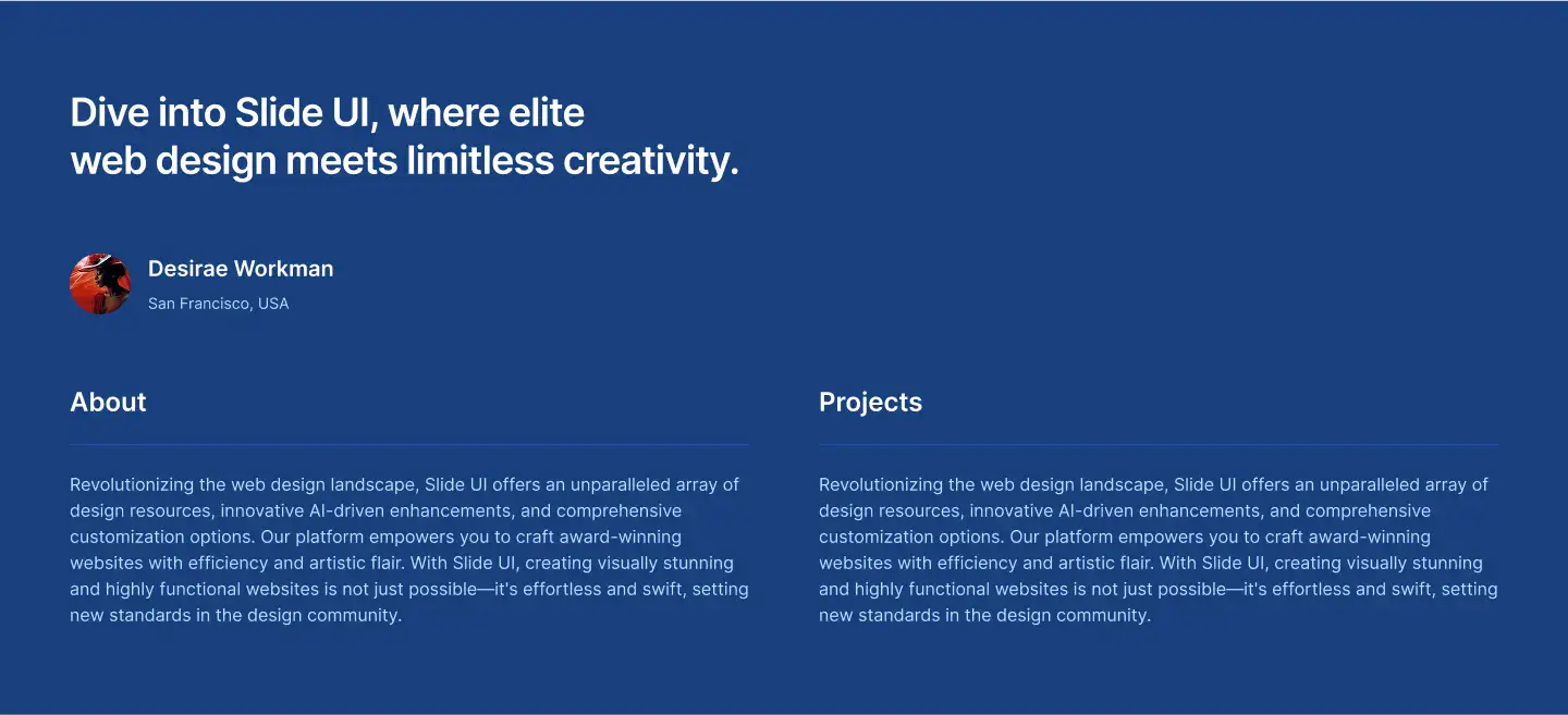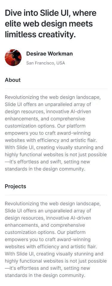 Lightweight sections for storytelling, intros, or visual breaks. Ideal for portfolios, agencies, and SaaS.