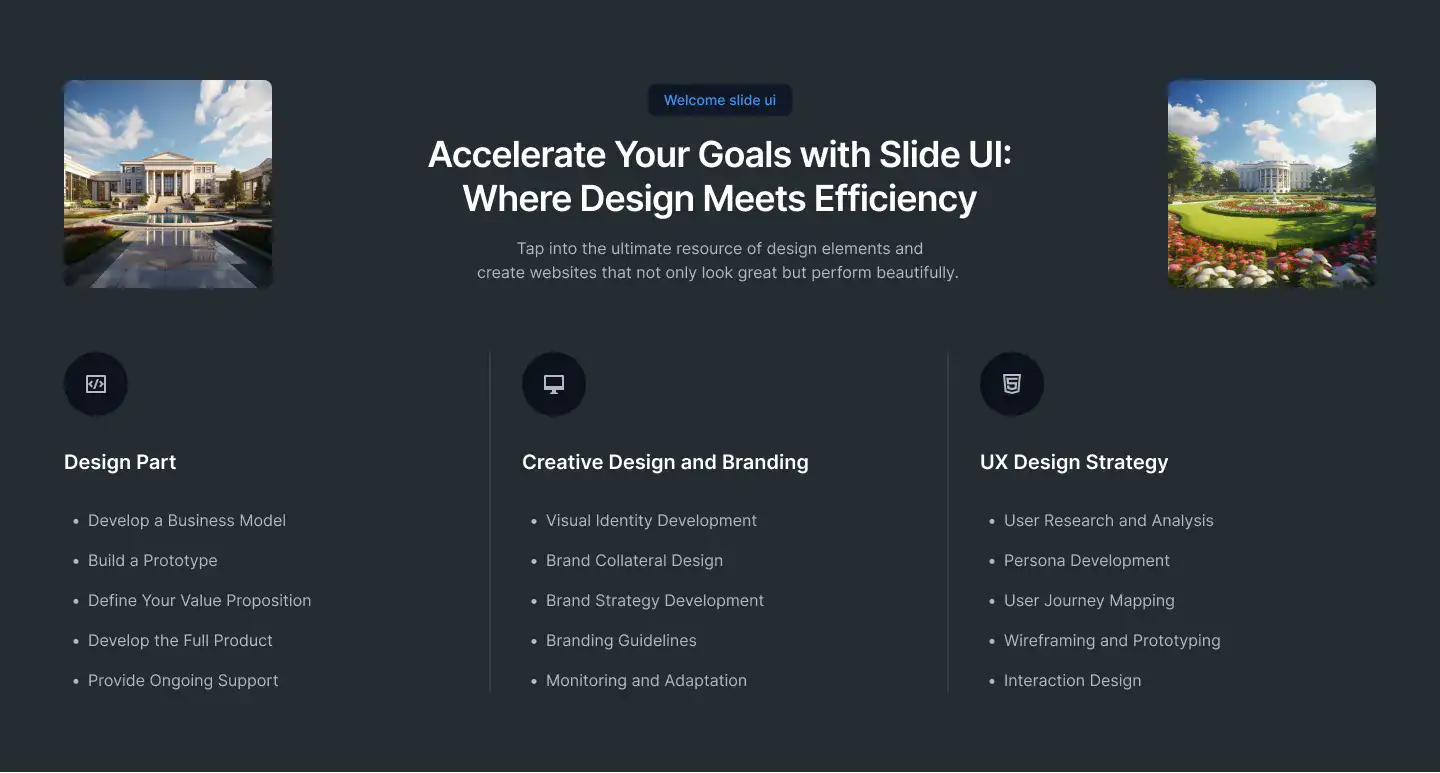 Grid or column-based layouts to highlight your best product features — fast, skimmable, and easy to reuse.