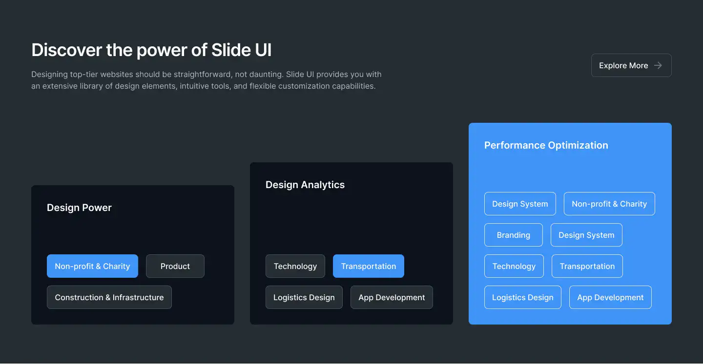 Grid or column-based layouts to highlight your best product features — fast, skimmable, and easy to reuse.