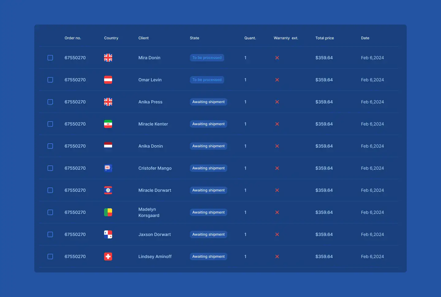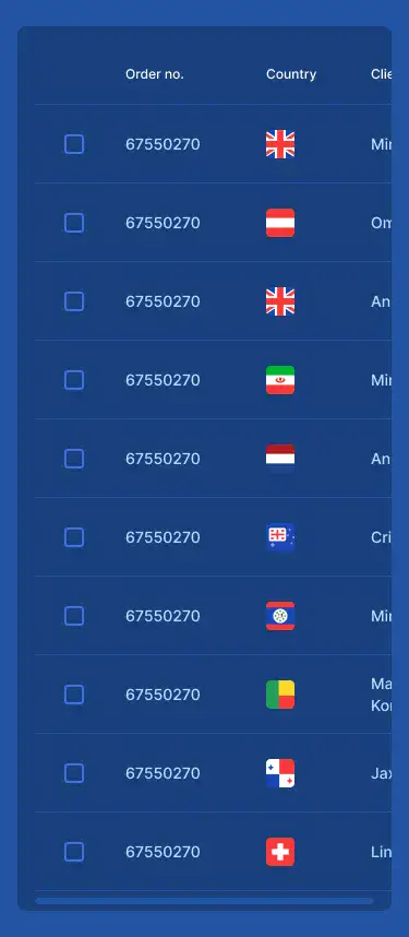 Responsive data table blocks — sortable, readable, and styled for dashboards or admin use.