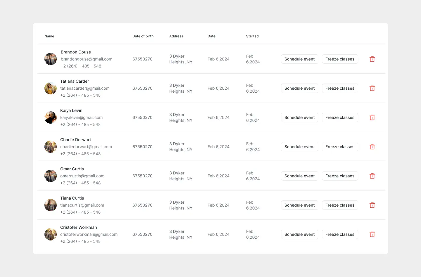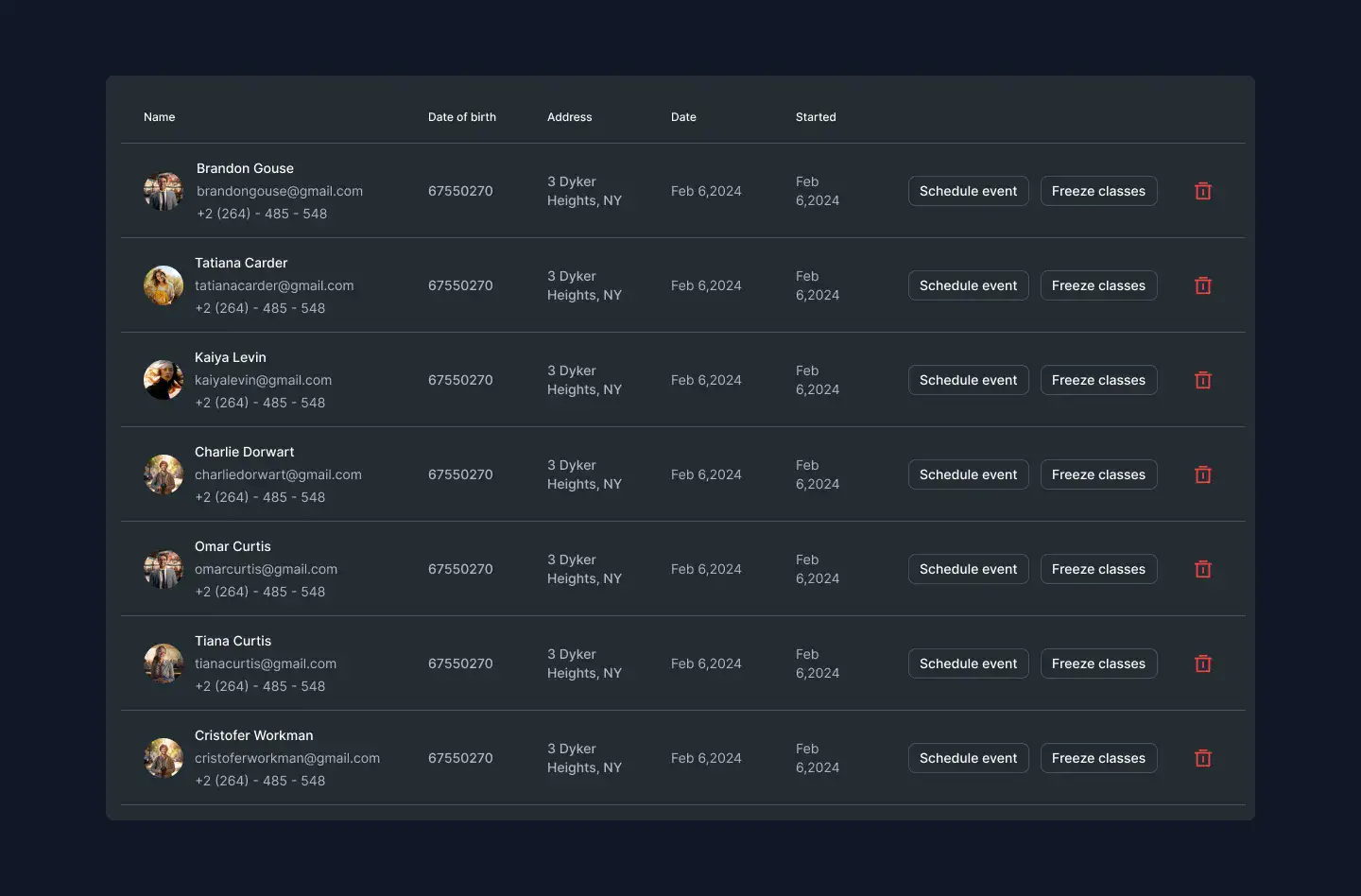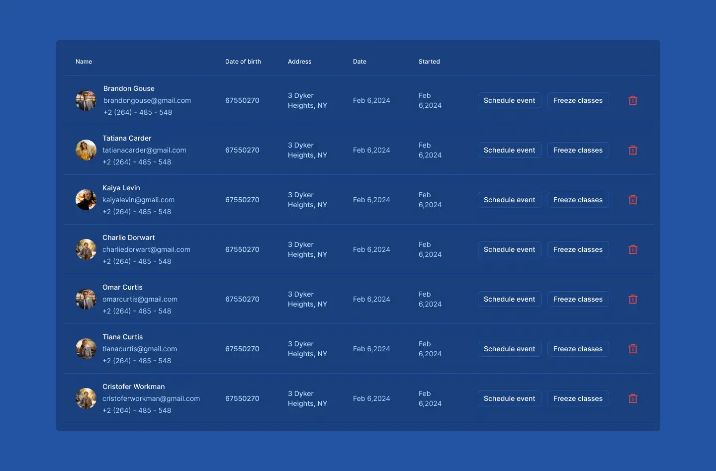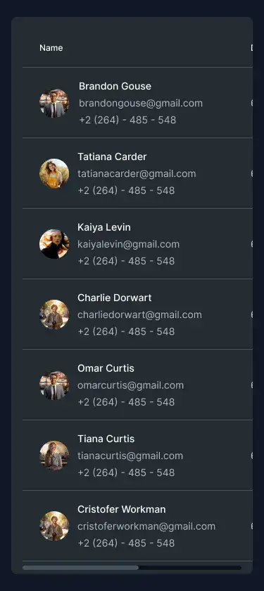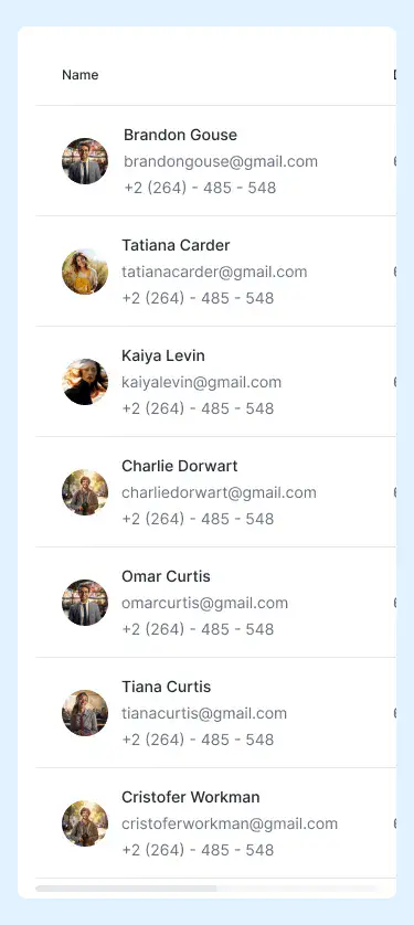 Responsive data table blocks — sortable, readable, and styled for dashboards or admin use.