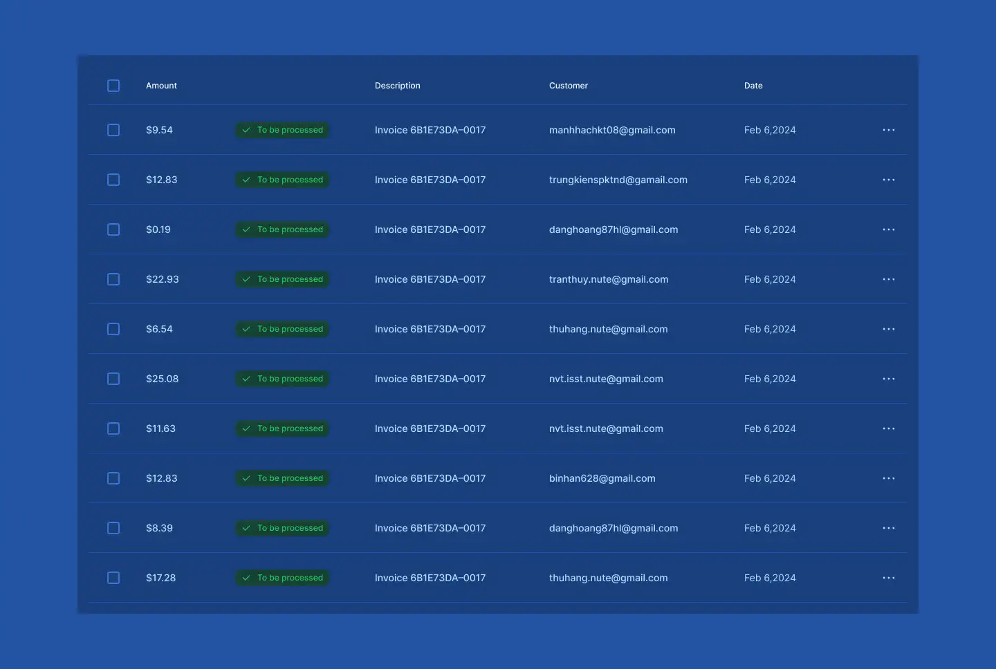 Responsive data table blocks — sortable, readable, and styled for dashboards or admin use.