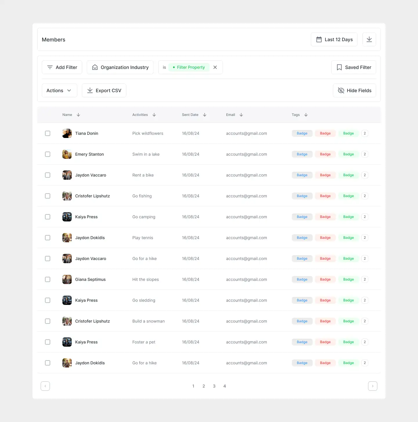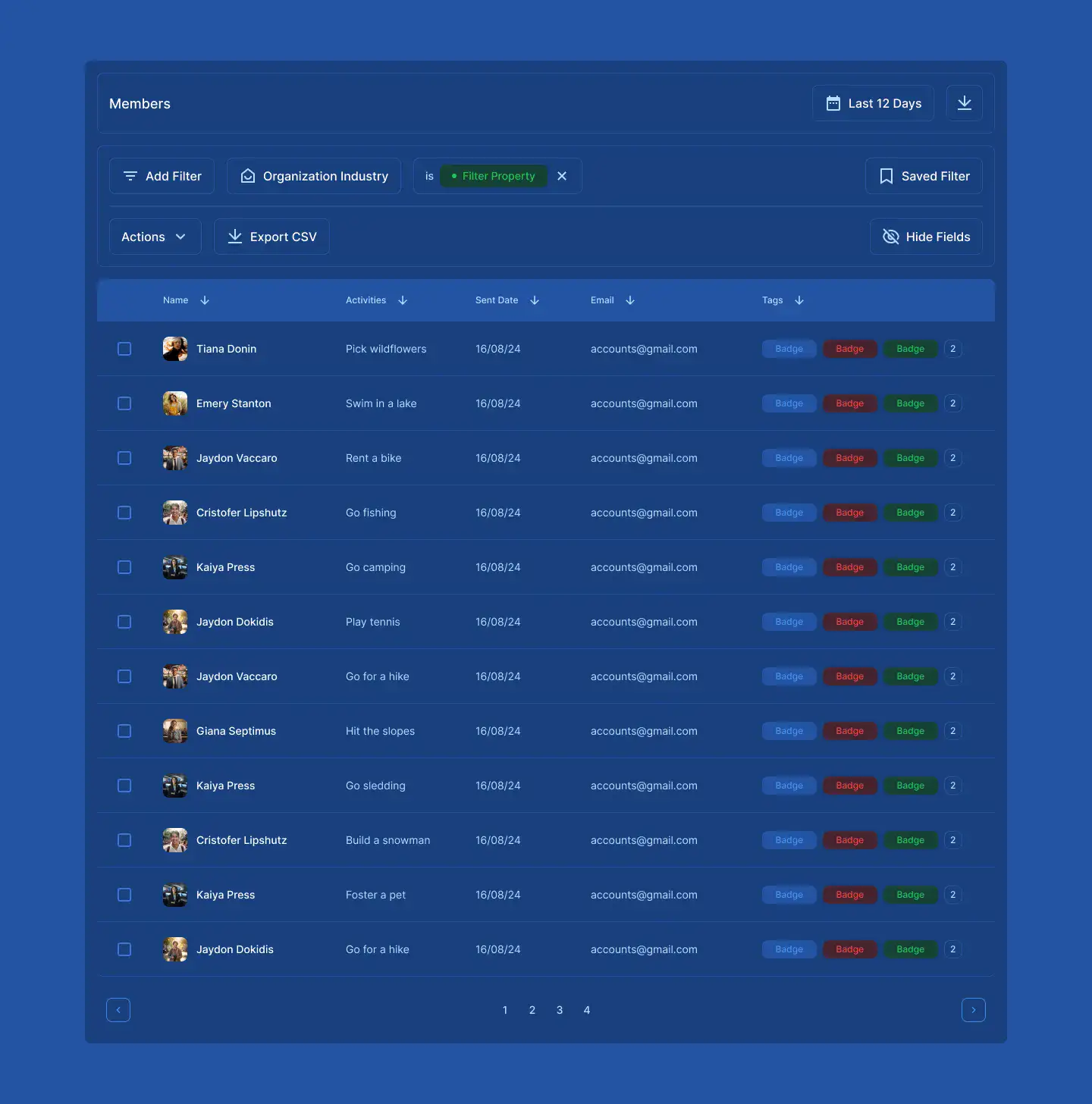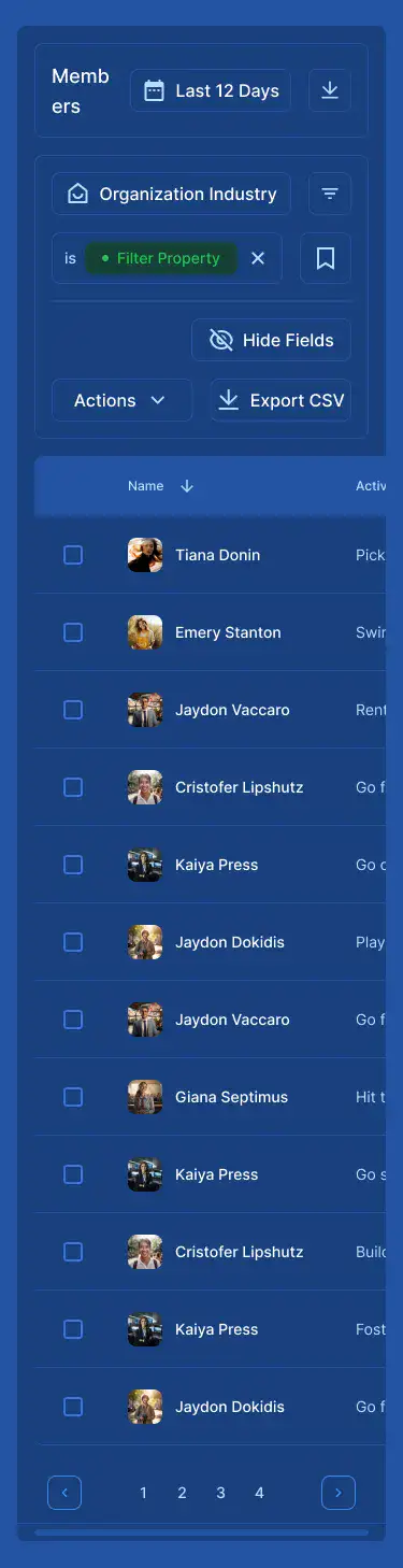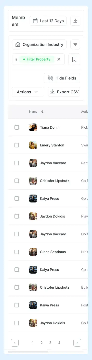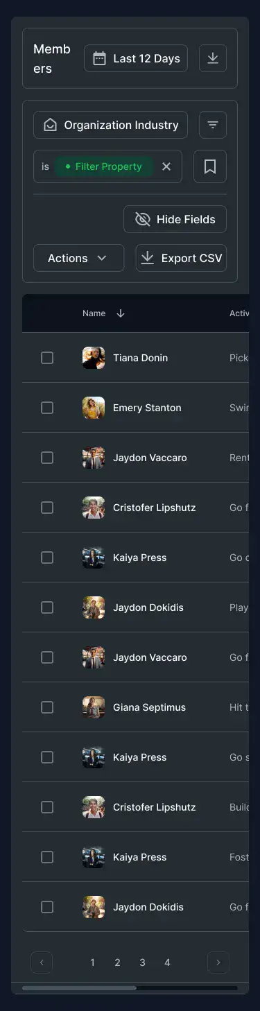 Responsive data table blocks — sortable, readable, and styled for dashboards or admin use.