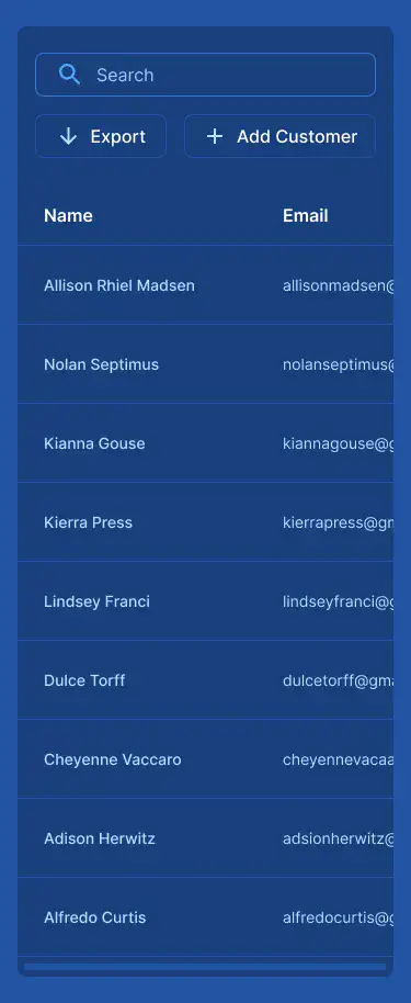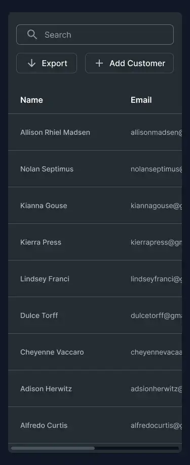 Responsive data table blocks — sortable, readable, and styled for dashboards or admin use.