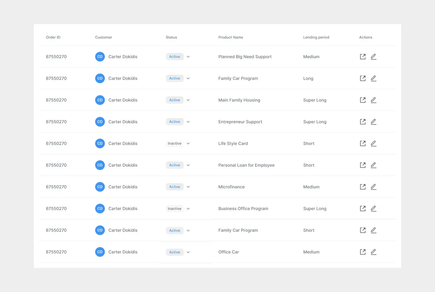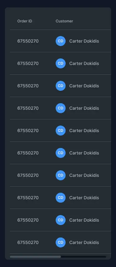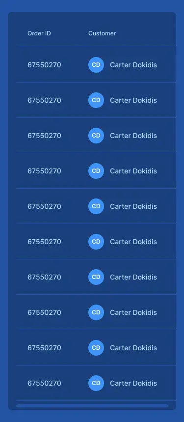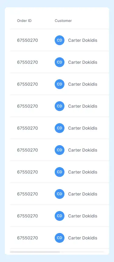 Responsive data table blocks — sortable, readable, and styled for dashboards or admin use.