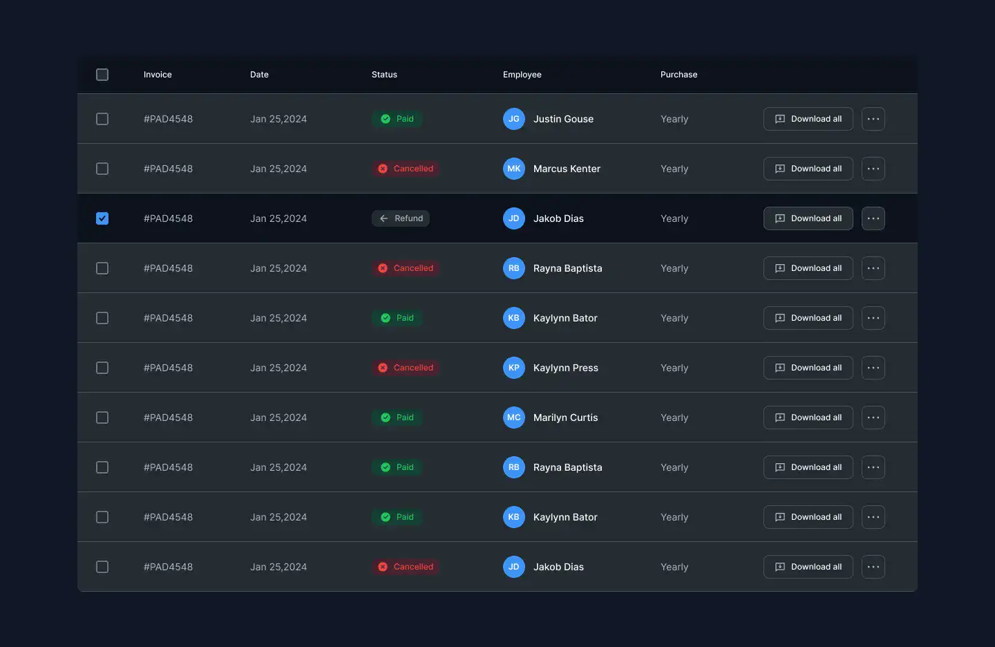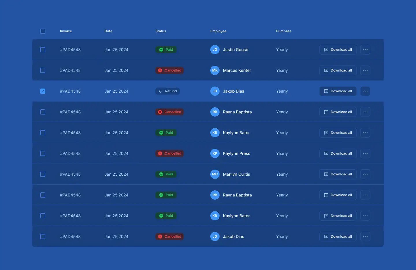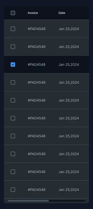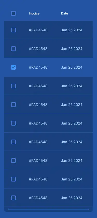 Responsive data table blocks — sortable, readable, and styled for dashboards or admin use.