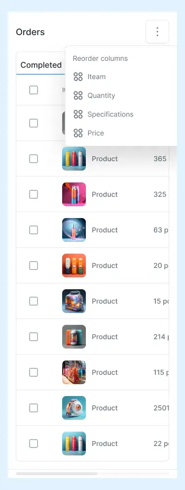 Responsive data table blocks — sortable, readable, and styled for dashboards or admin use.