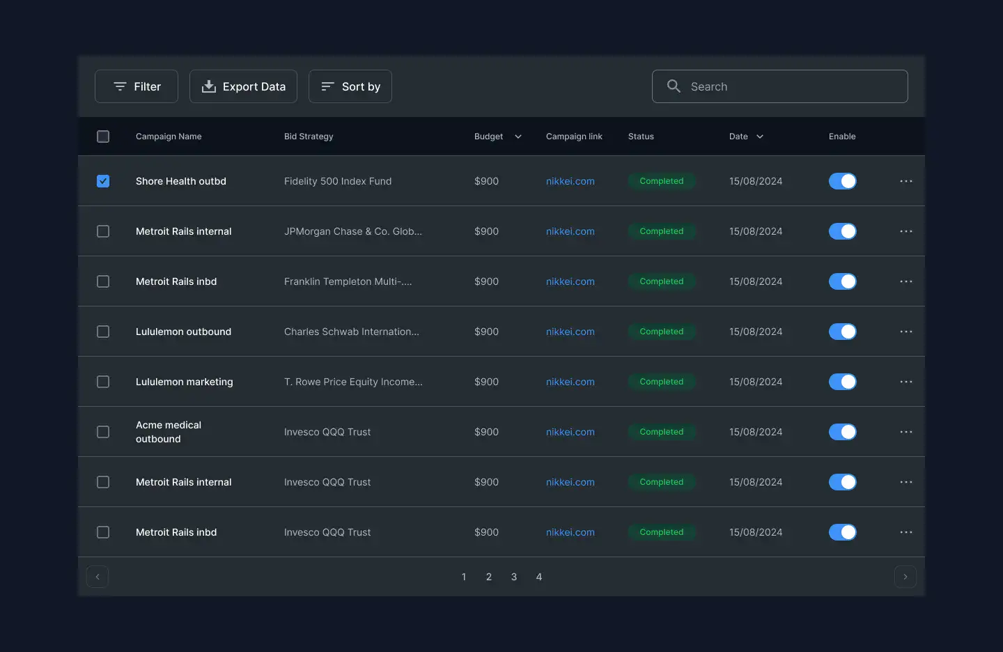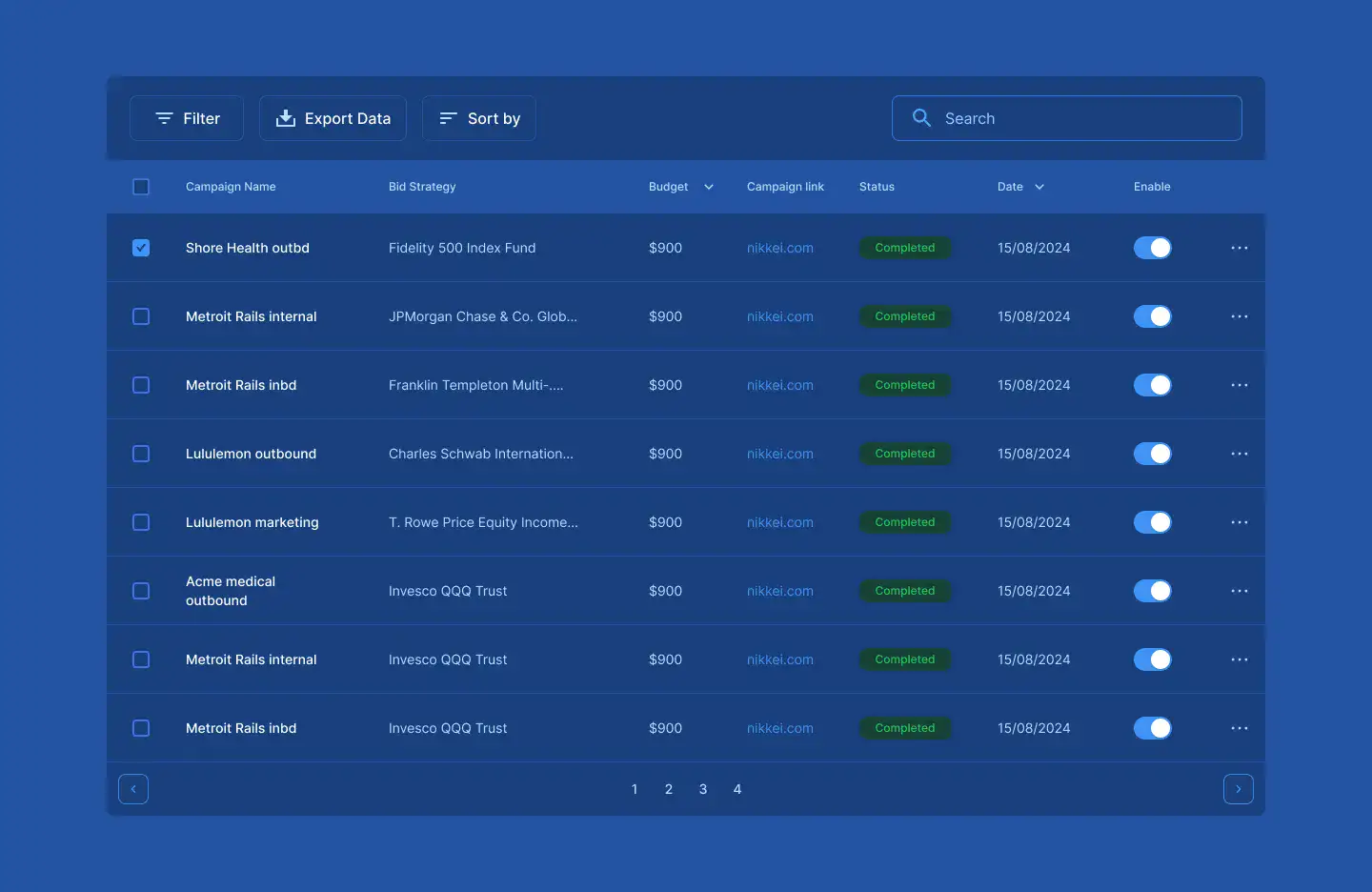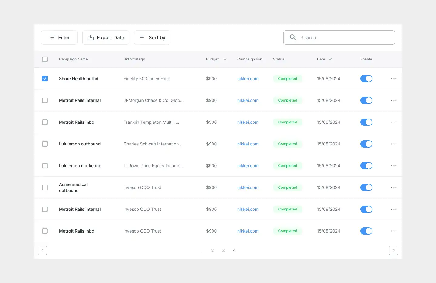 Responsive data table blocks — sortable, readable, and styled for dashboards or admin use.