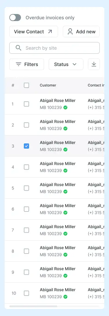 Responsive data table blocks — sortable, readable, and styled for dashboards or admin use.