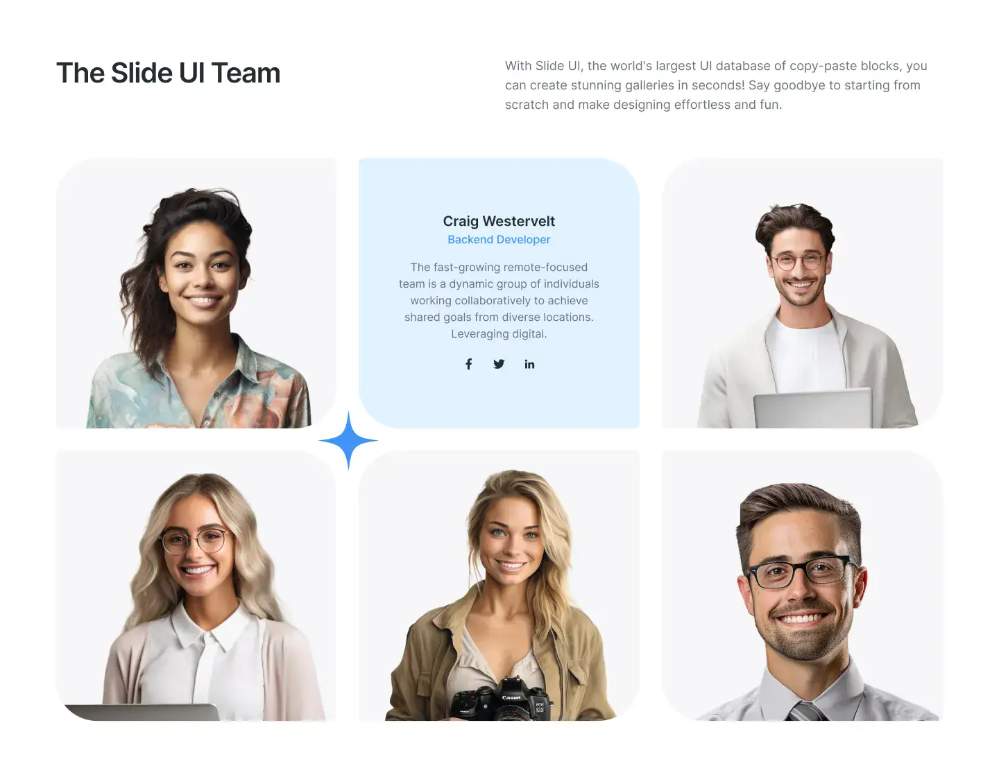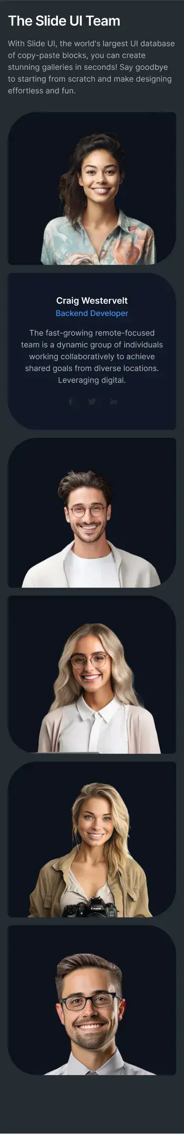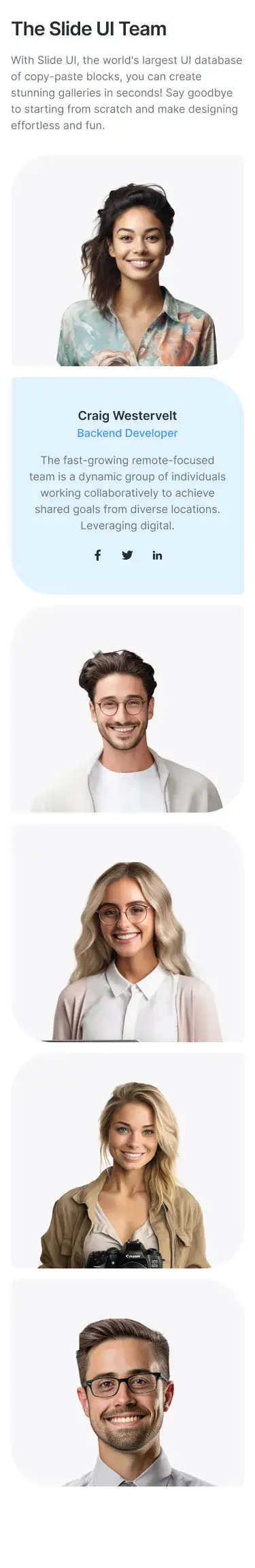 Lightweight sections for storytelling, intros, or visual breaks. Ideal for portfolios, agencies, and SaaS.