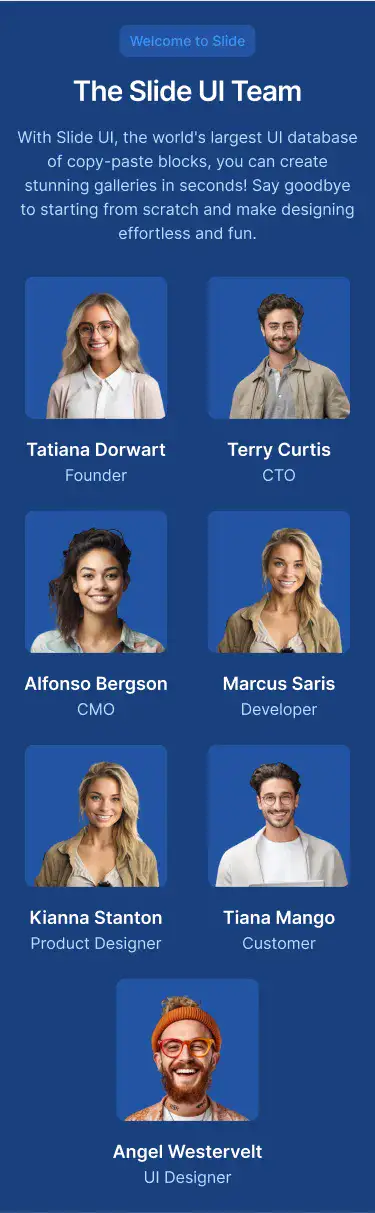 Team Layout for Figma — clean, themeable and responsive across Desktop, Tablet and Mobile. Includes Light, Dark and Accent modes for fast customisation. Ideal for Agency, Ecommerce, Fintech.