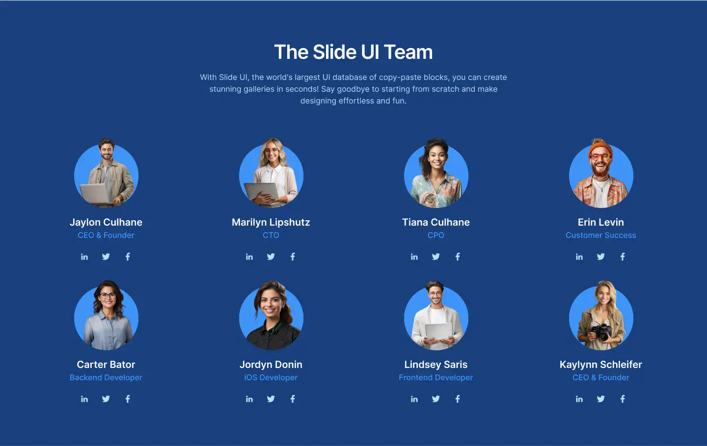Team Layout for Figma — clean, themeable and responsive across Desktop, Tablet and Mobile. Includes Light, Dark and Accent modes for fast customisation. Ideal for Crypto, Hotel, Insurance.