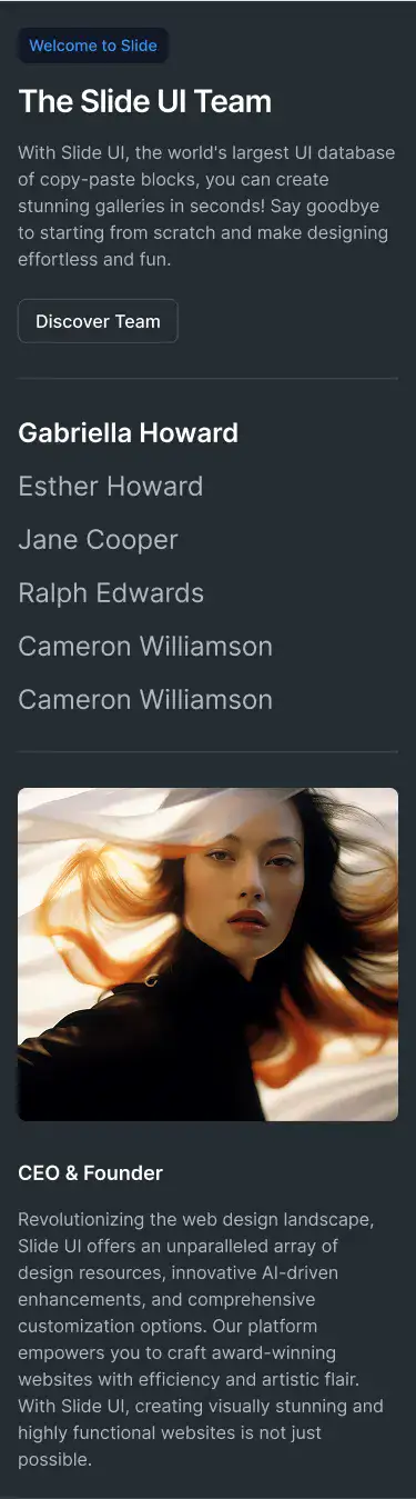 Team Layout for Figma — minimal, themeable and responsive across Desktop, Tablet and Mobile. Includes Light, Dark and Accent modes for fast customisation. Ideal for Crypto, Government, Healthcare.