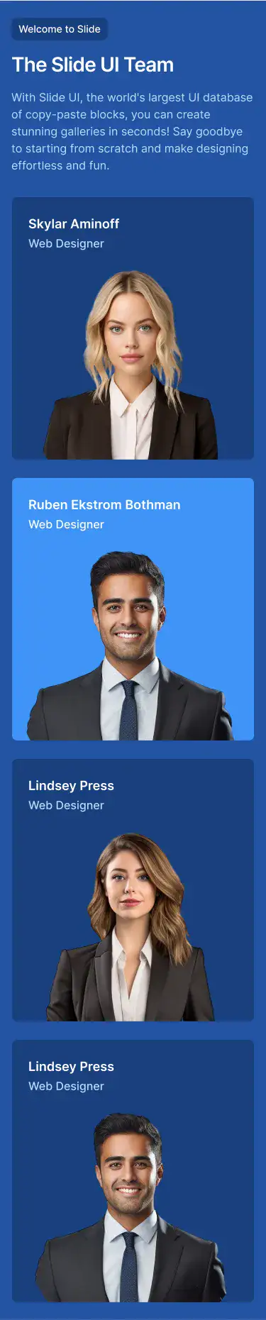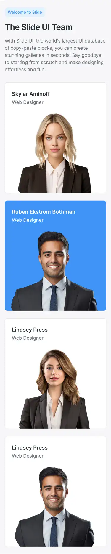 Lightweight sections for storytelling, intros, or visual breaks. Ideal for portfolios, agencies, and SaaS.