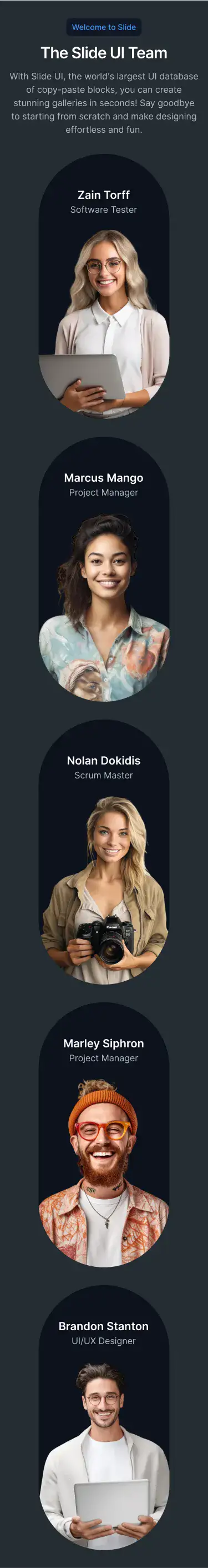 Team Layout for Figma — modern, themeable and responsive across Desktop, Tablet and Mobile. Includes Light, Dark and Accent modes for fast customisation. Ideal for Ecommerce, Education, Non-Profit.