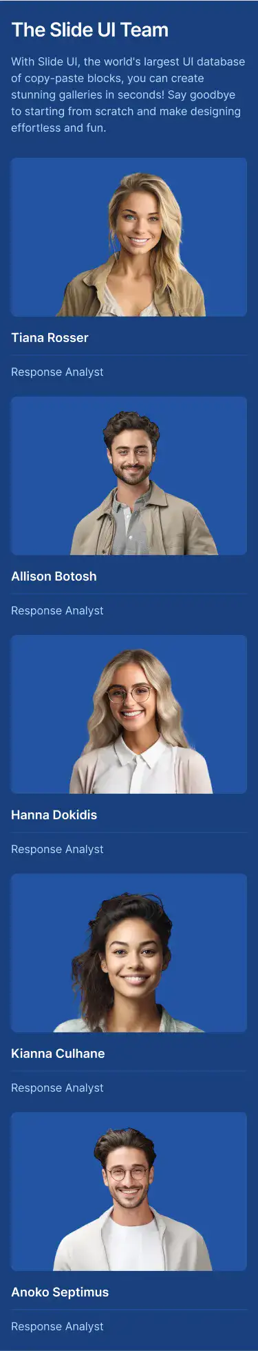 Team Layout for Figma — modern, themeable and responsive across Desktop, Tablet and Mobile. Includes Light, Dark and Accent modes for fast customisation. Ideal for Automotive, Finance, Marketplace.