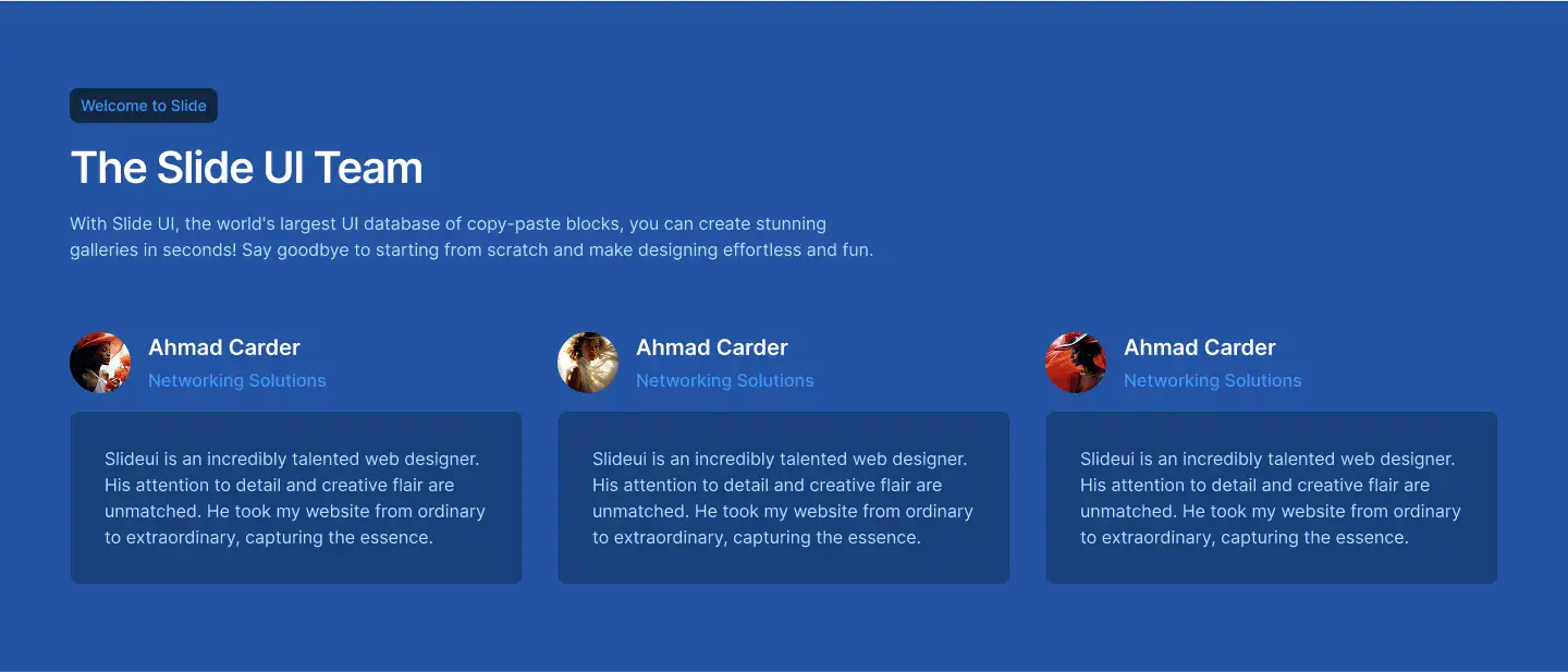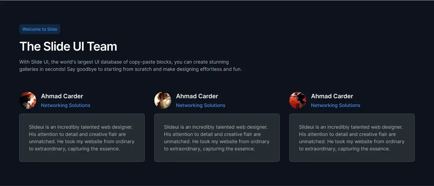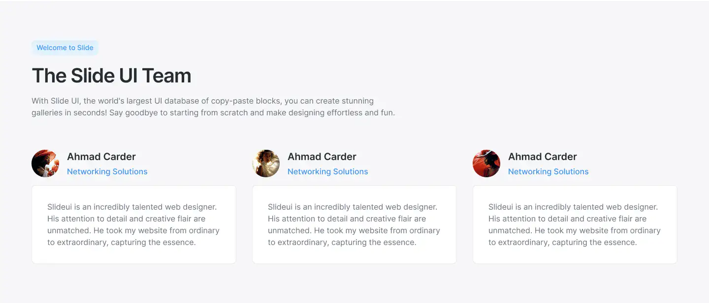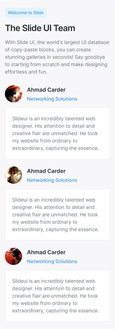 High-trust testimonial sections with avatars, logos, quotes, or carousels. Designed to increase credibility and conversions.