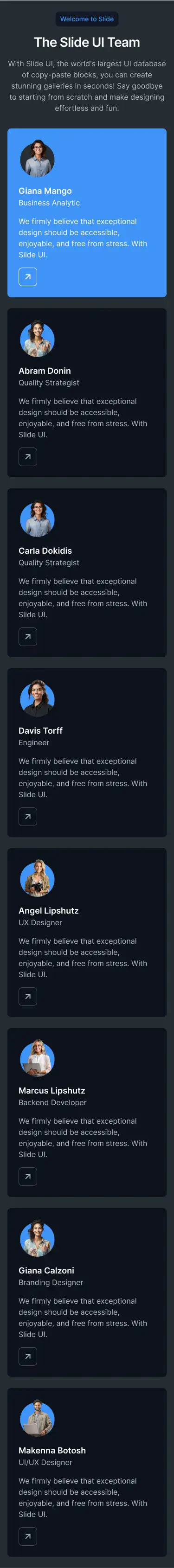 Team Layout for Figma — swiss, themeable and responsive across Desktop, Tablet and Mobile. Includes Light, Dark and Accent modes for fast customisation. Ideal for Hotel, SaaS, Tech.